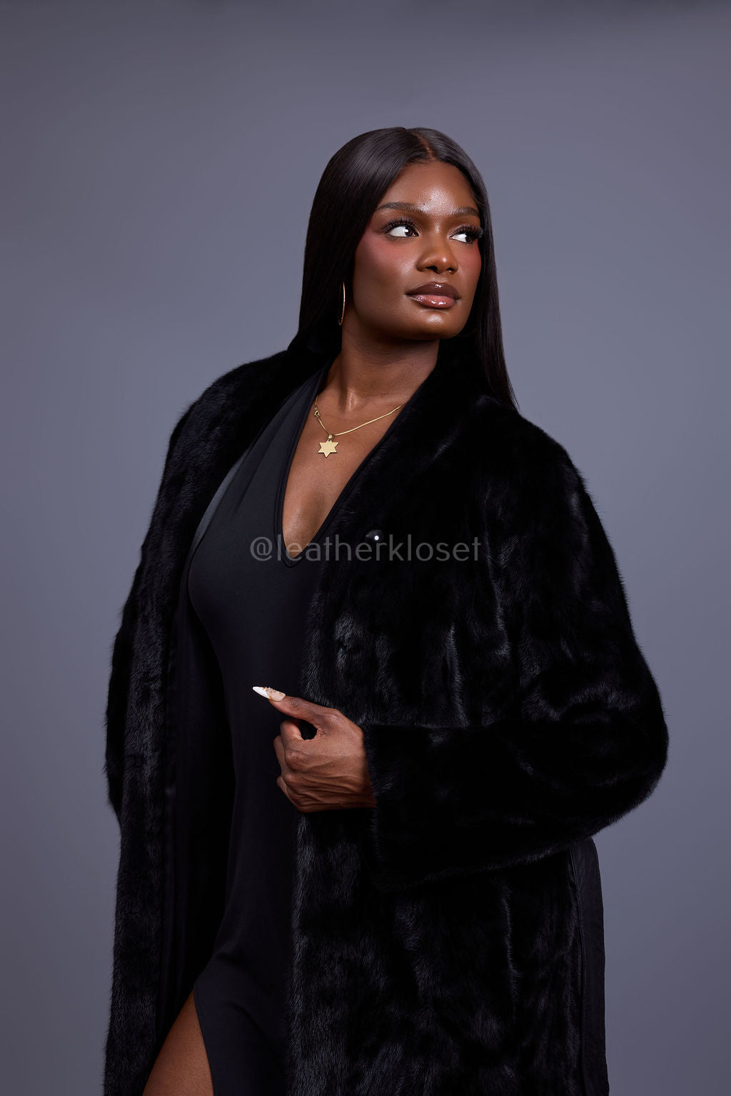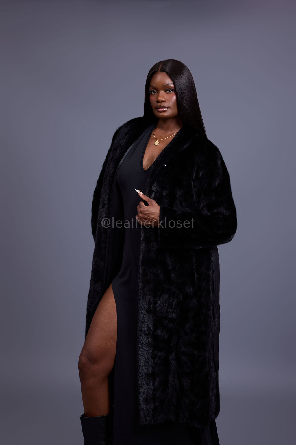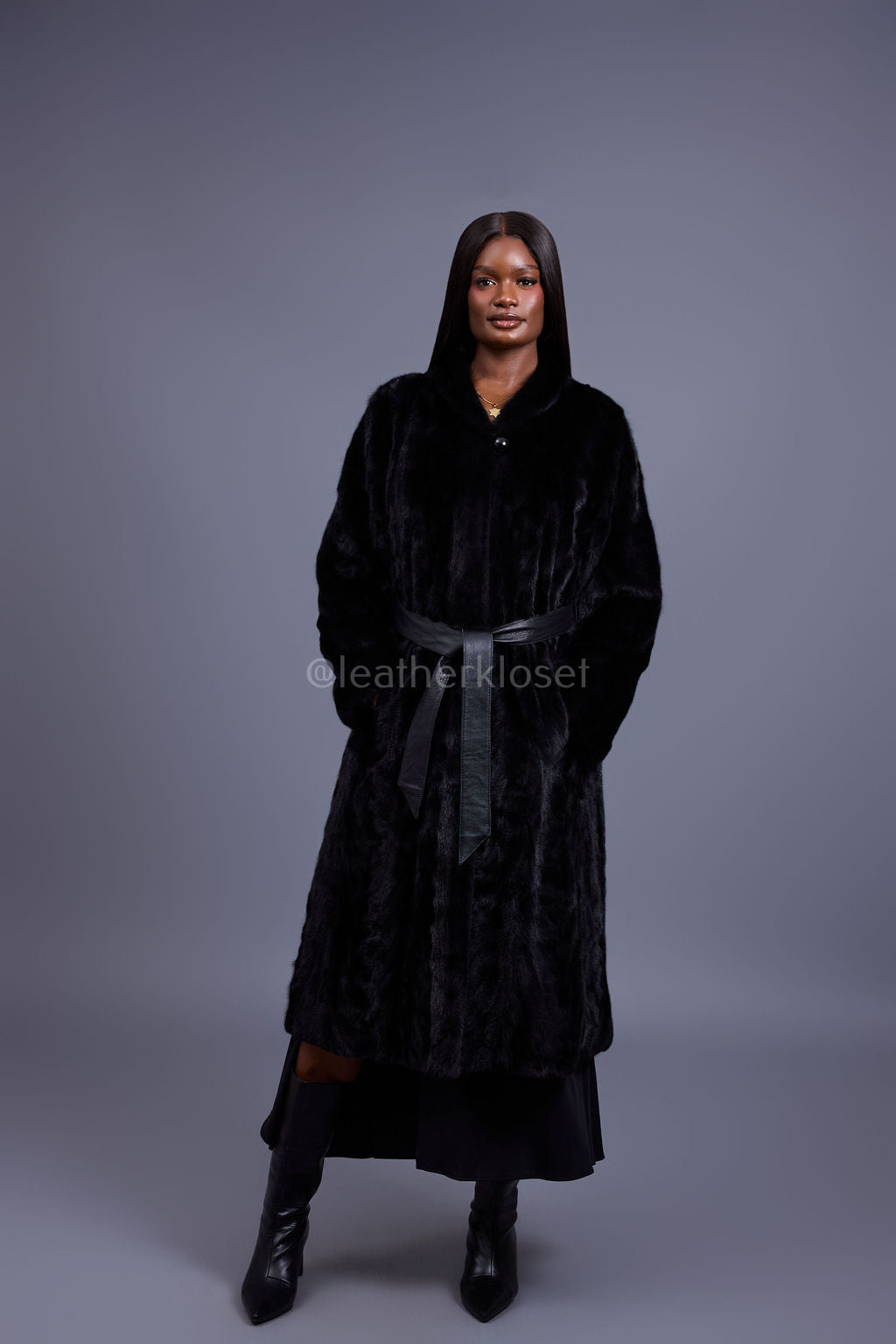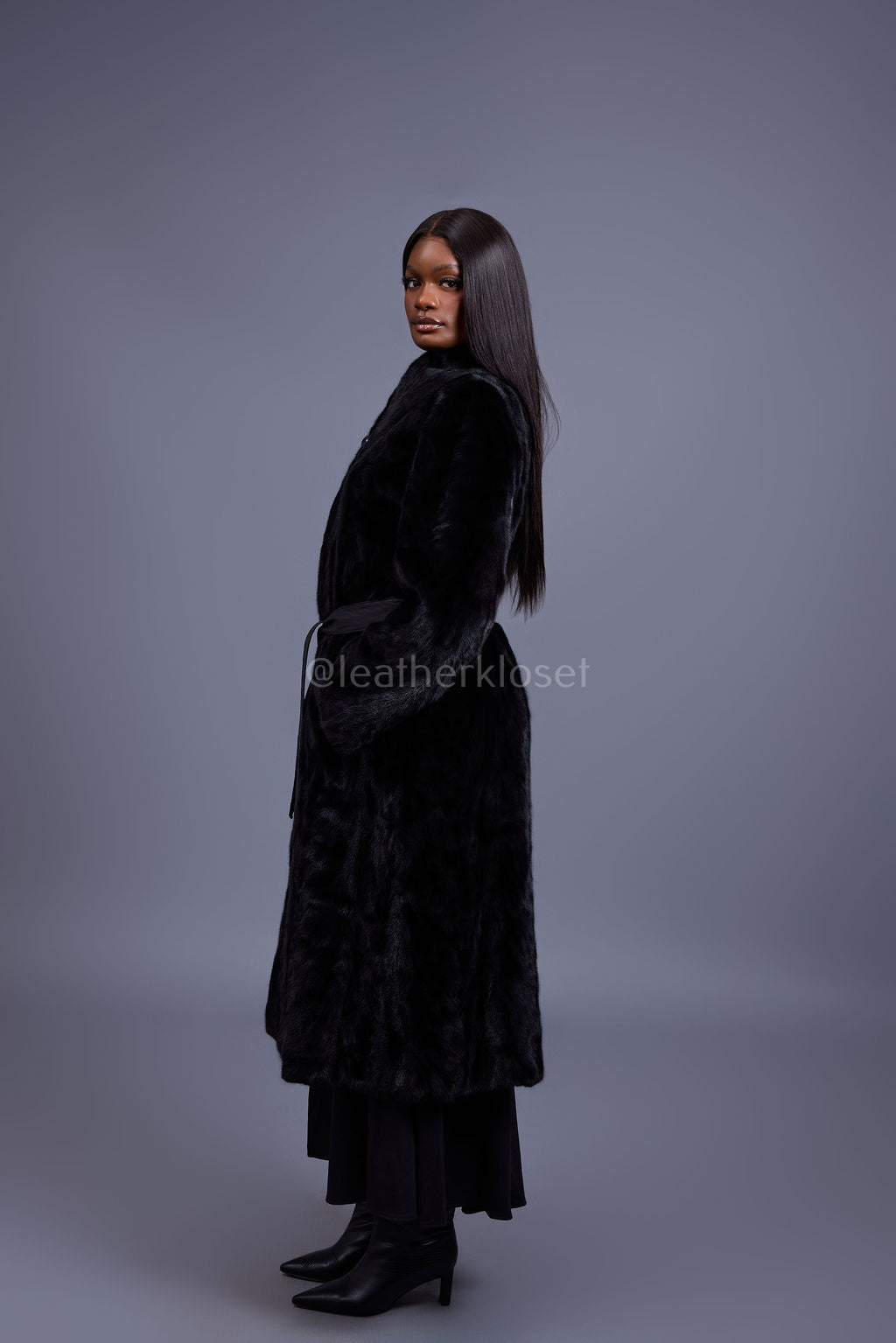 Women's Cherokee Long Mink Fur Coat [Black]