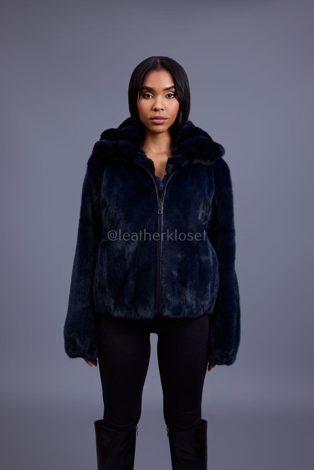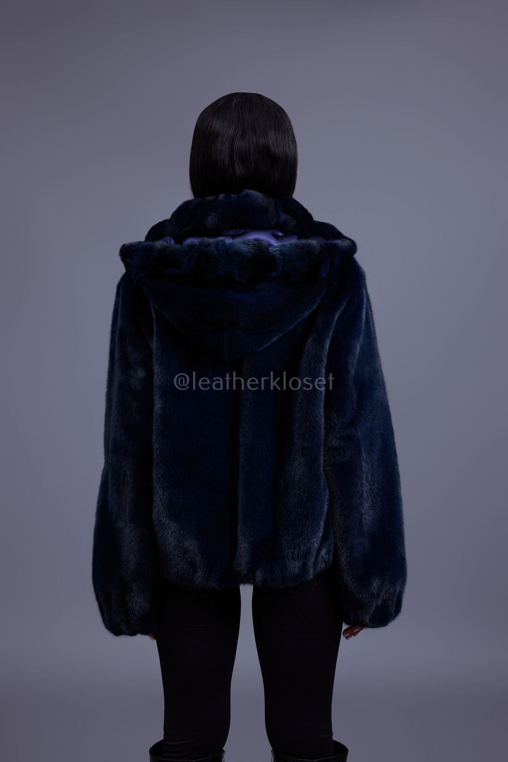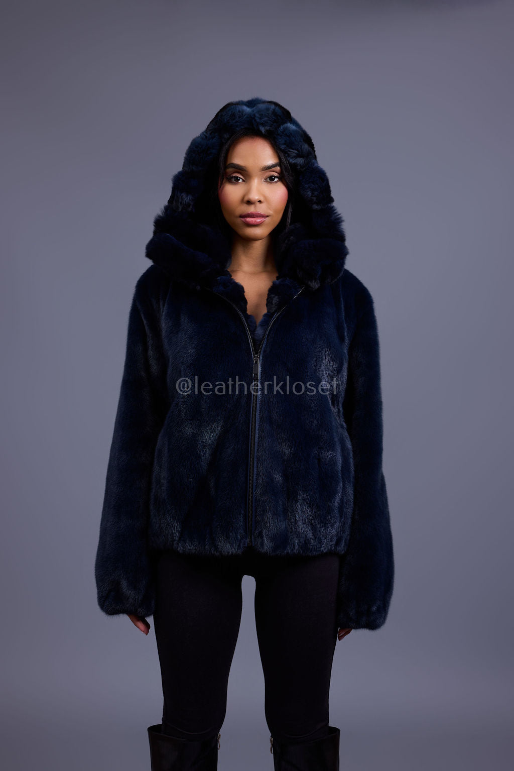 Women's Mink Bomber With Chinchilla Collar And Hood [Navy]