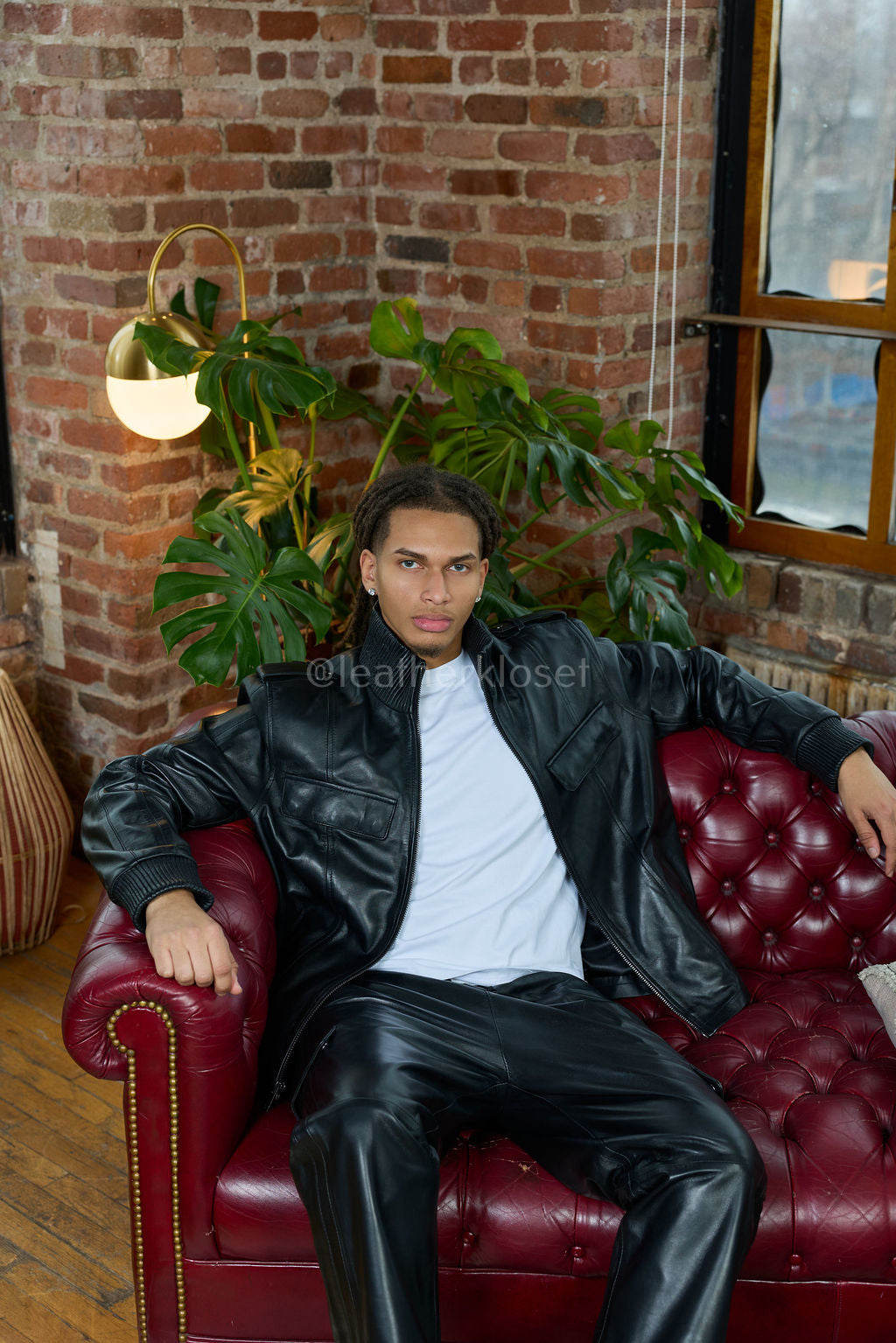 Men's Lucas Quilted Leather Bomber Jacket [Black]