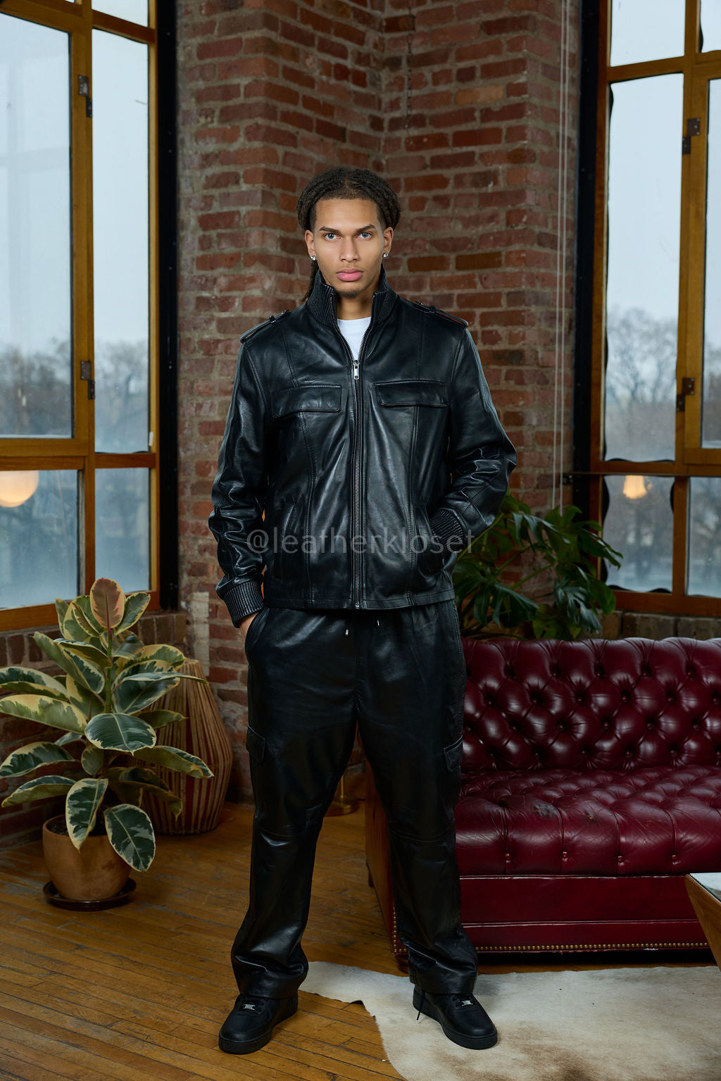 Men's Ace Tracksuit In Lambskin Leather [Black]