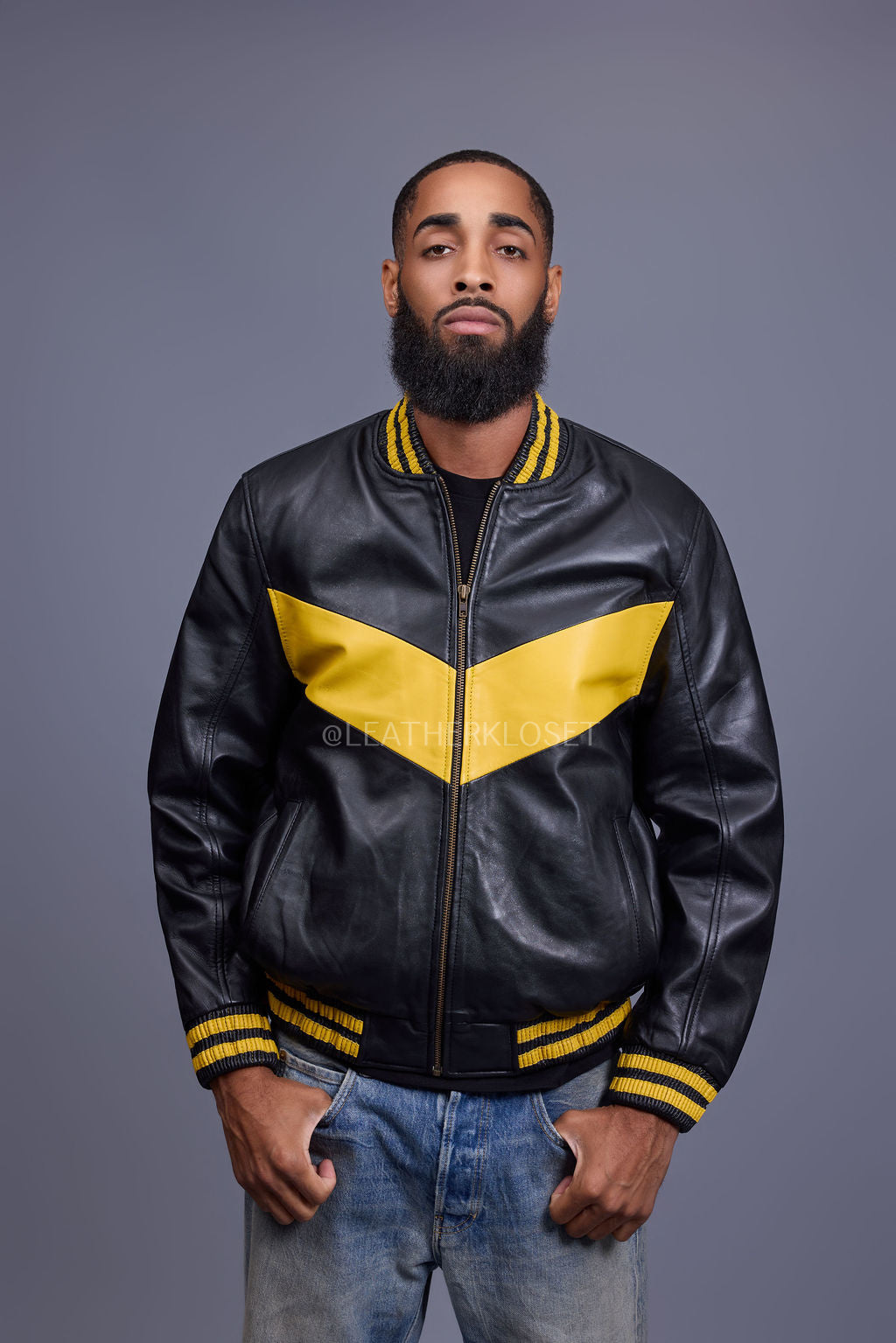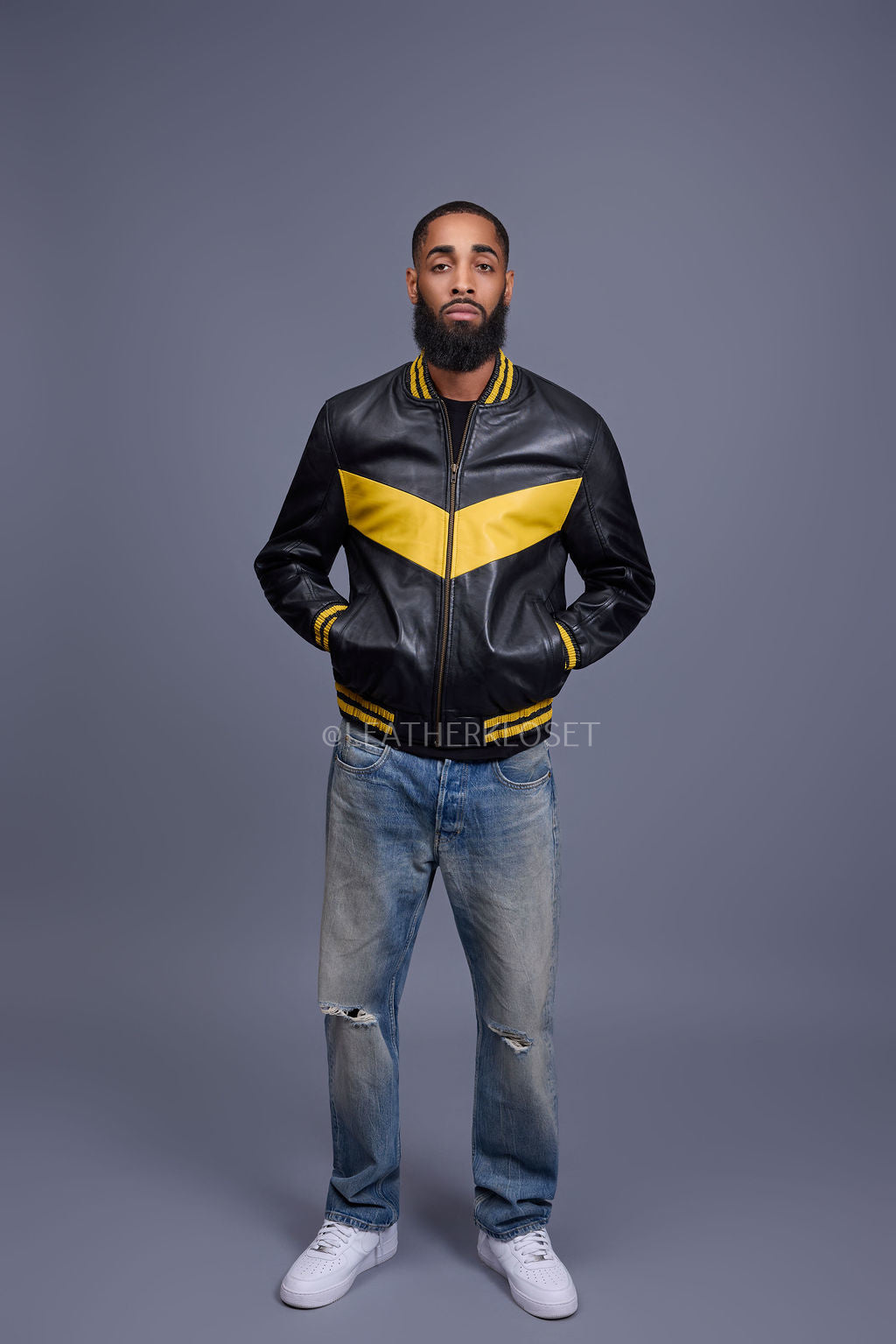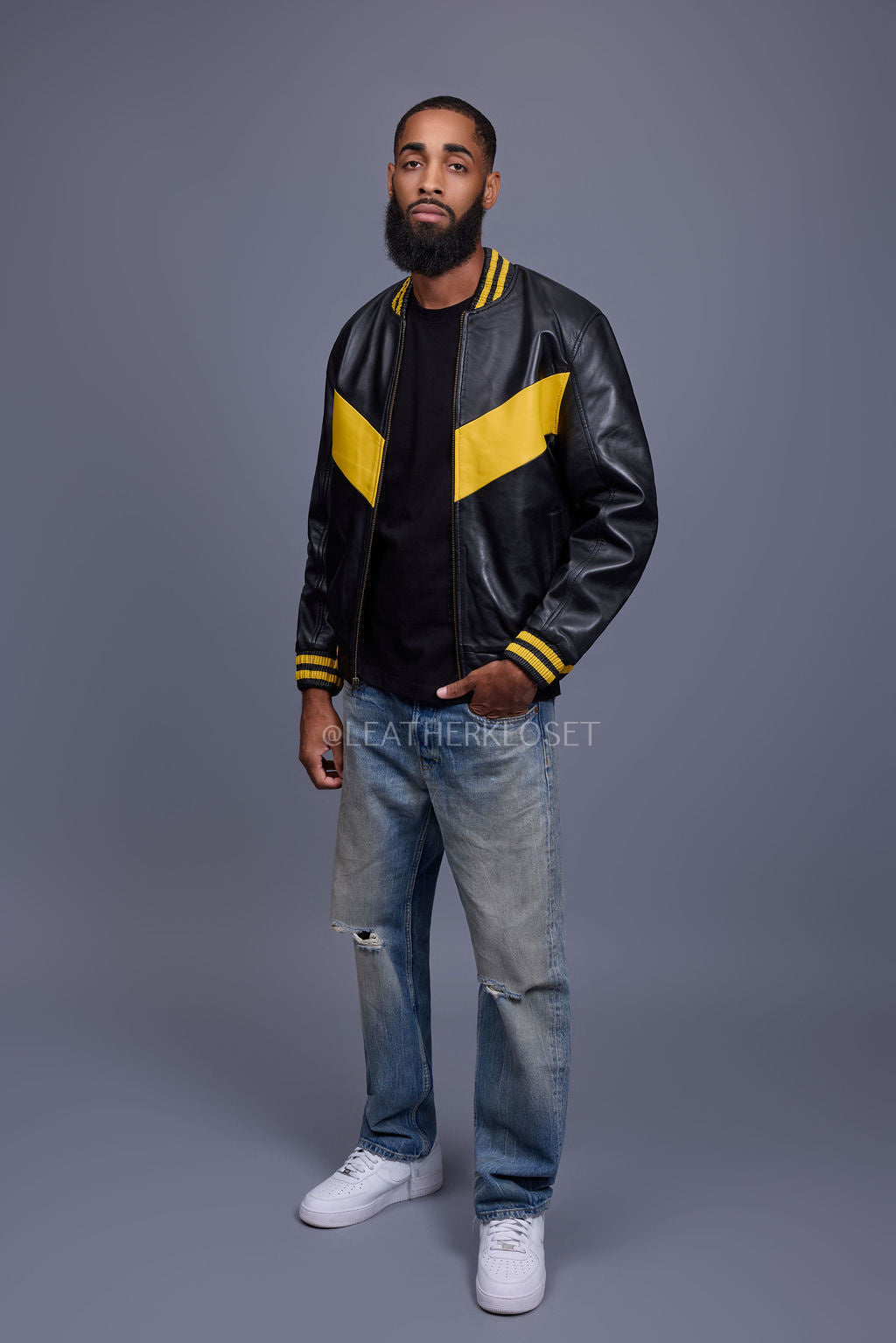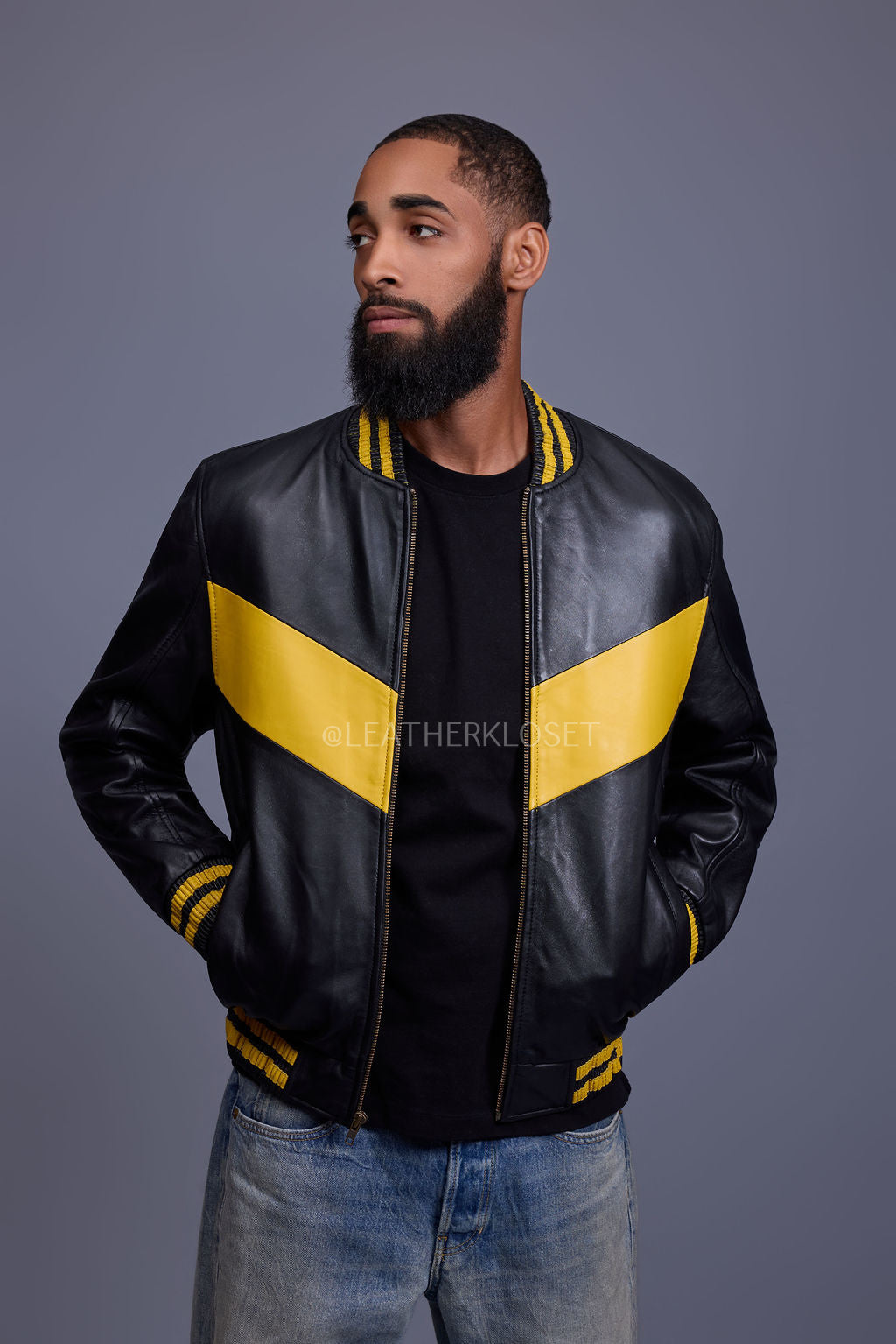 Men's Lucas Quilted Leather Bomber Jacket [Black]