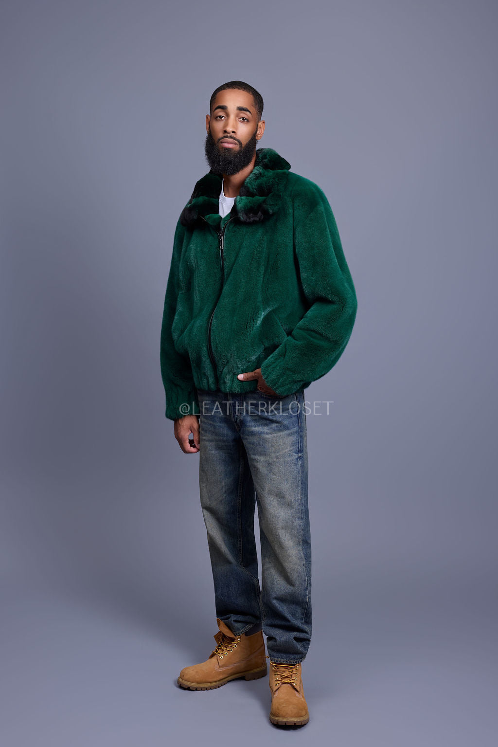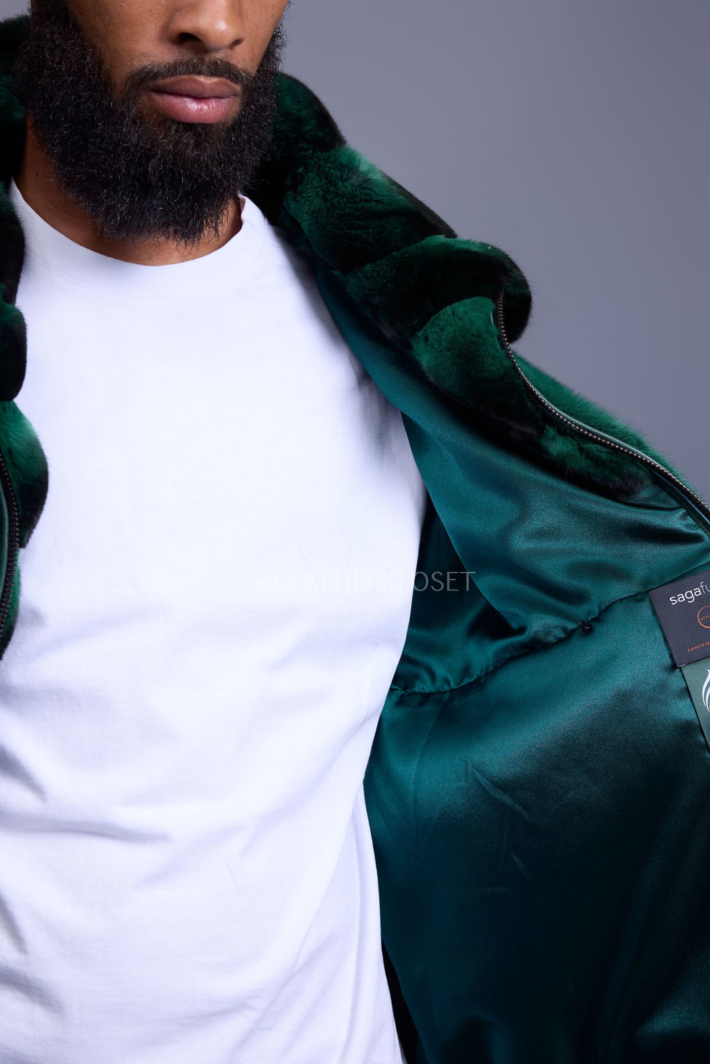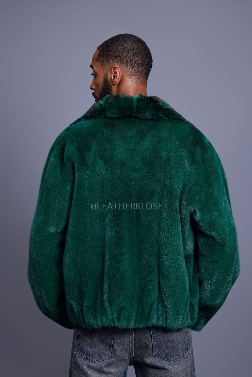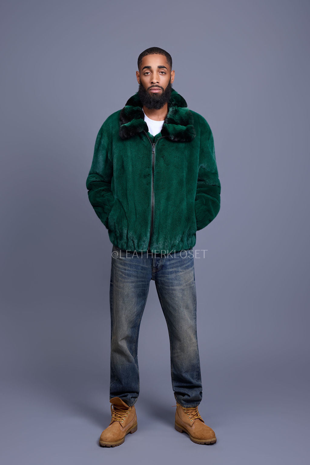Men's Mink Bomber Jacket With Chinchilla Collar [Green]