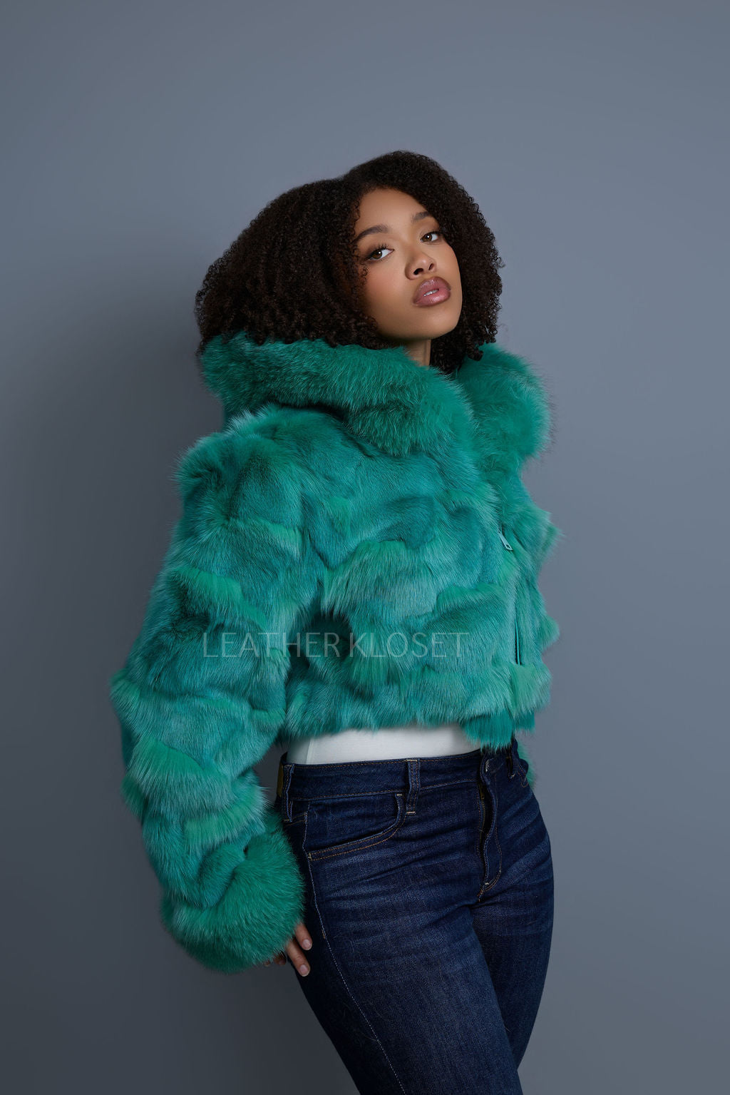 Women's Crop Fox Bomber With Hood [Royal Blue]