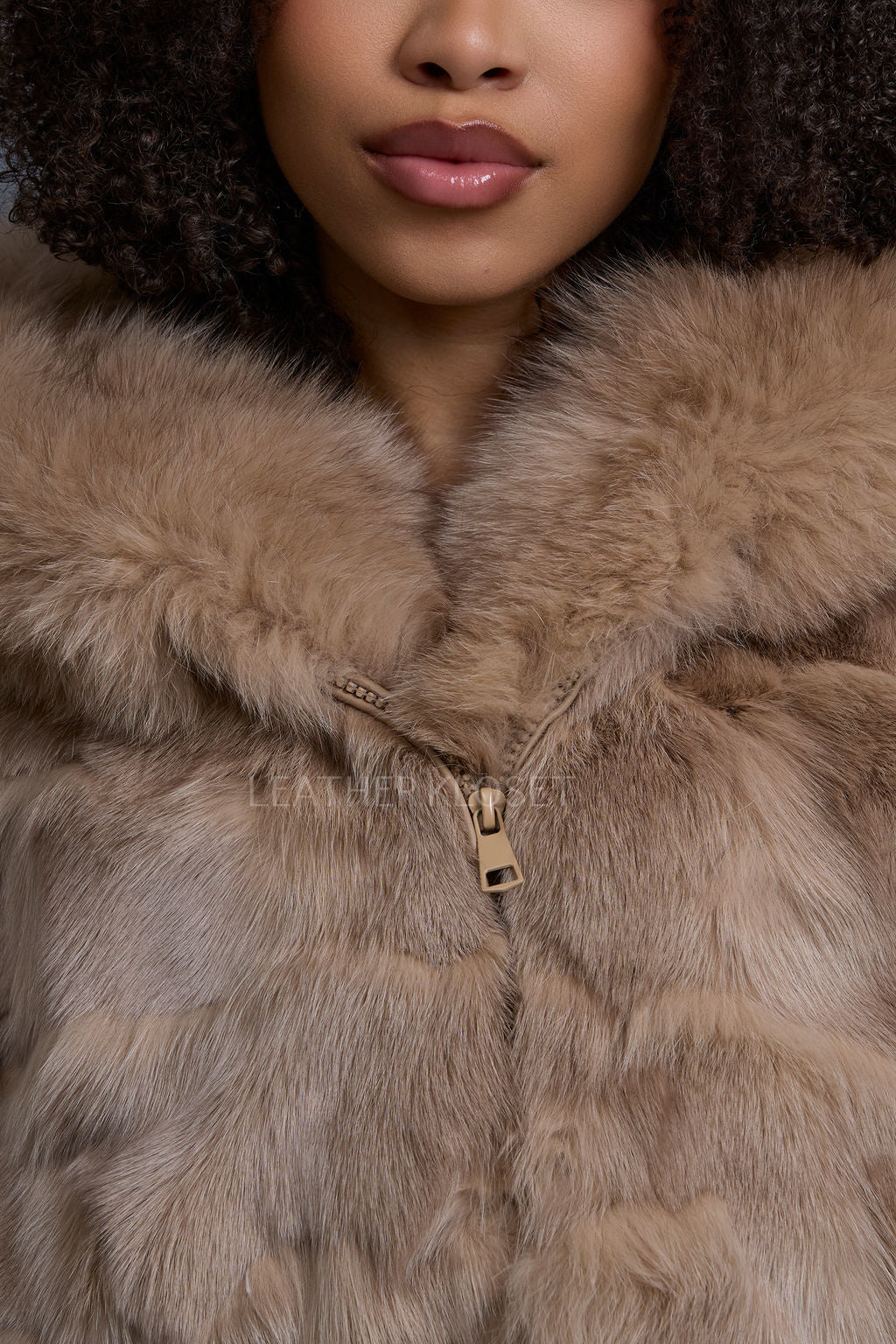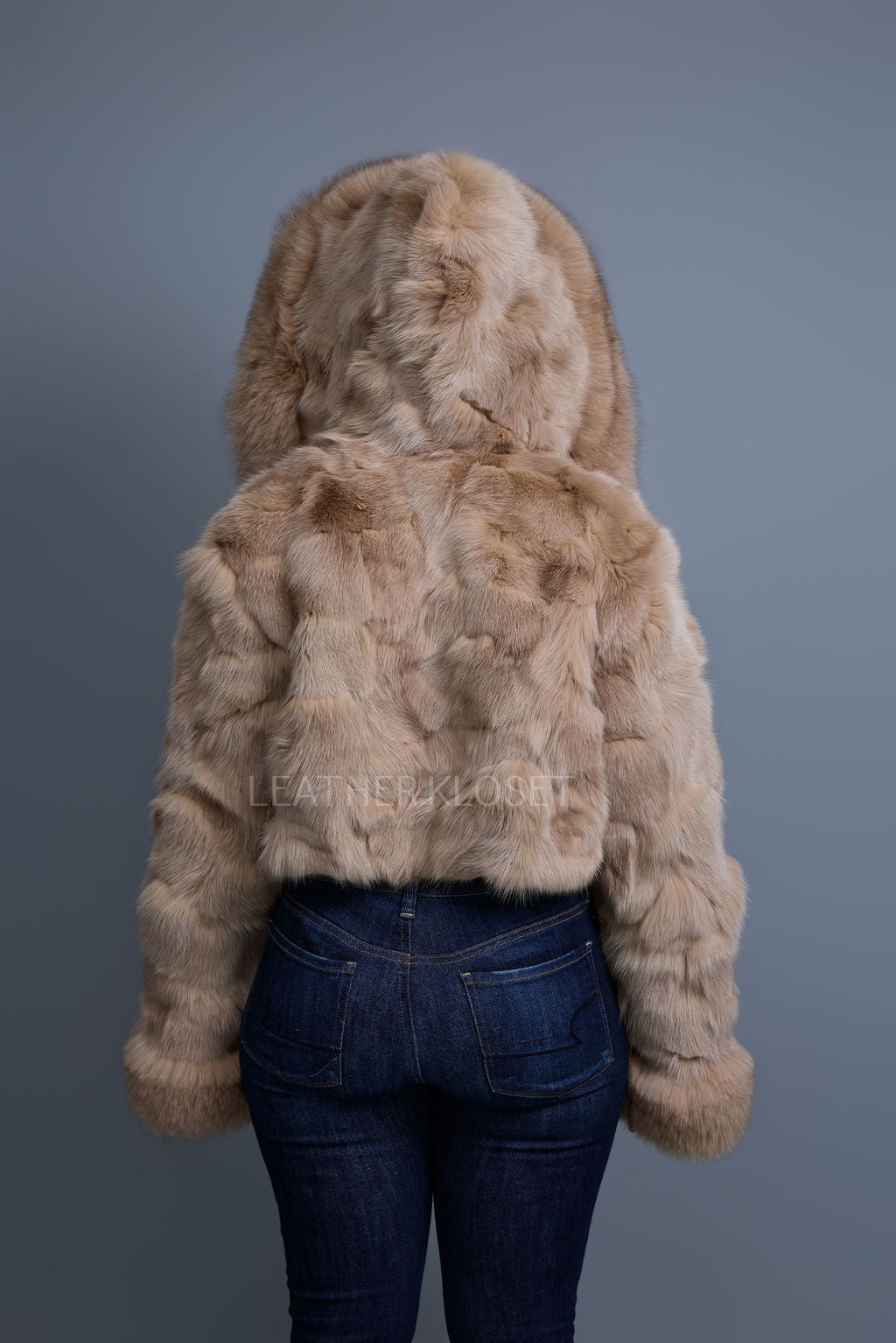 Women's Crop Fox Bomber With Hood [Hot Pink]