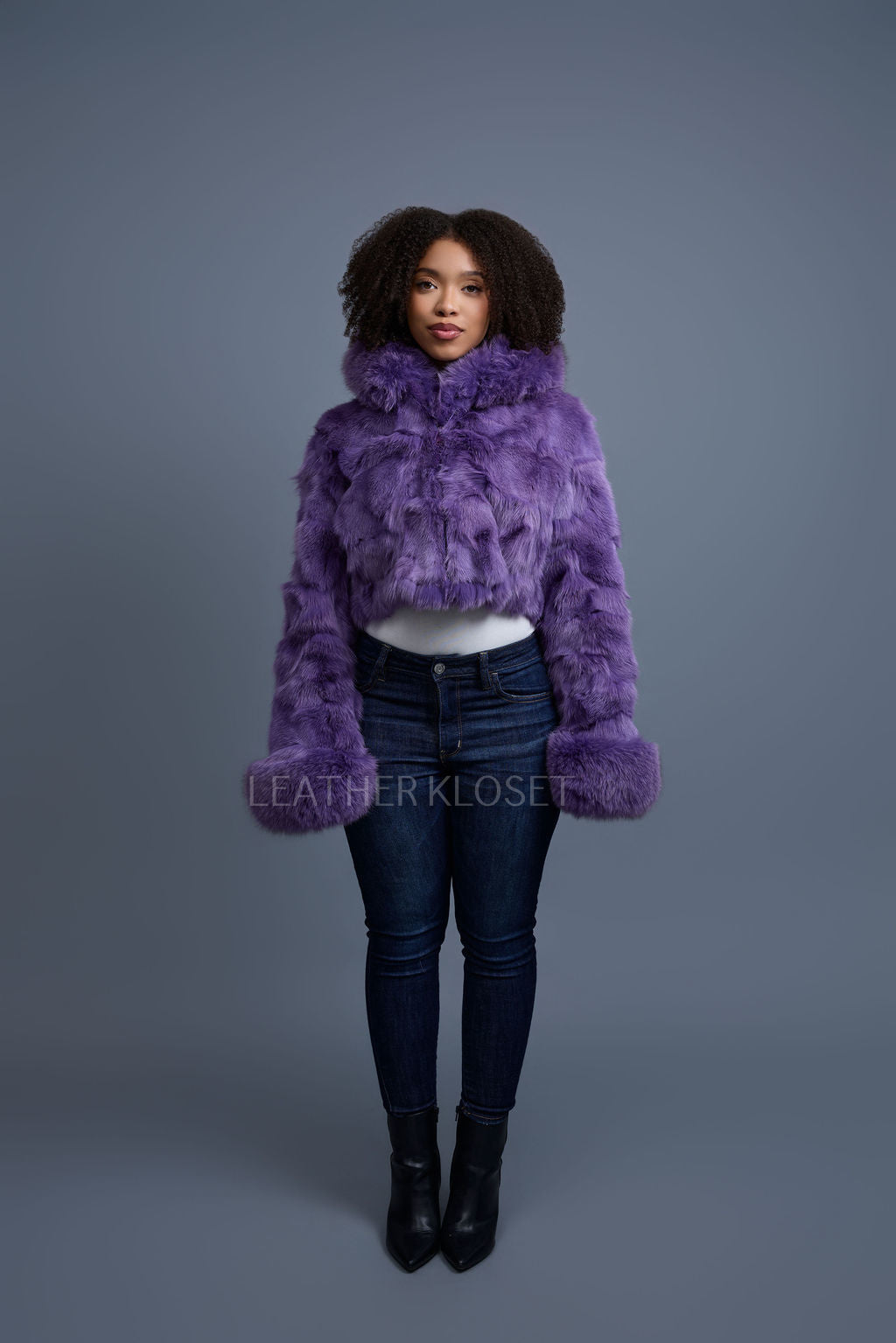 Women's Crop Fox Bomber With Hood [Lavender]