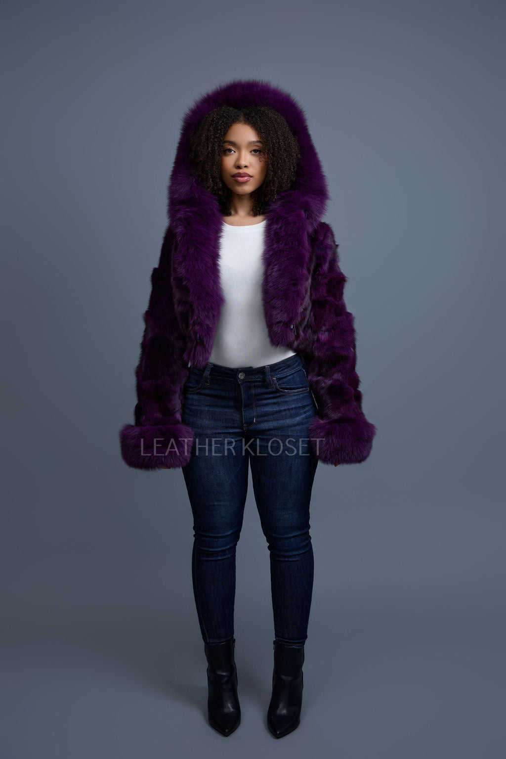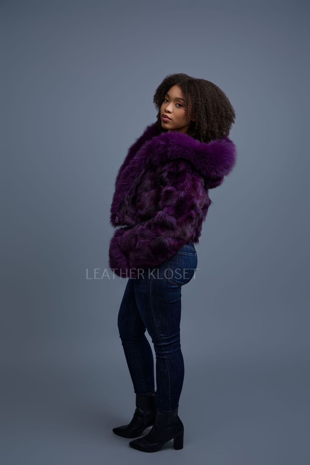 Women's Crop Fox Bomber With Hood [Royal Blue]