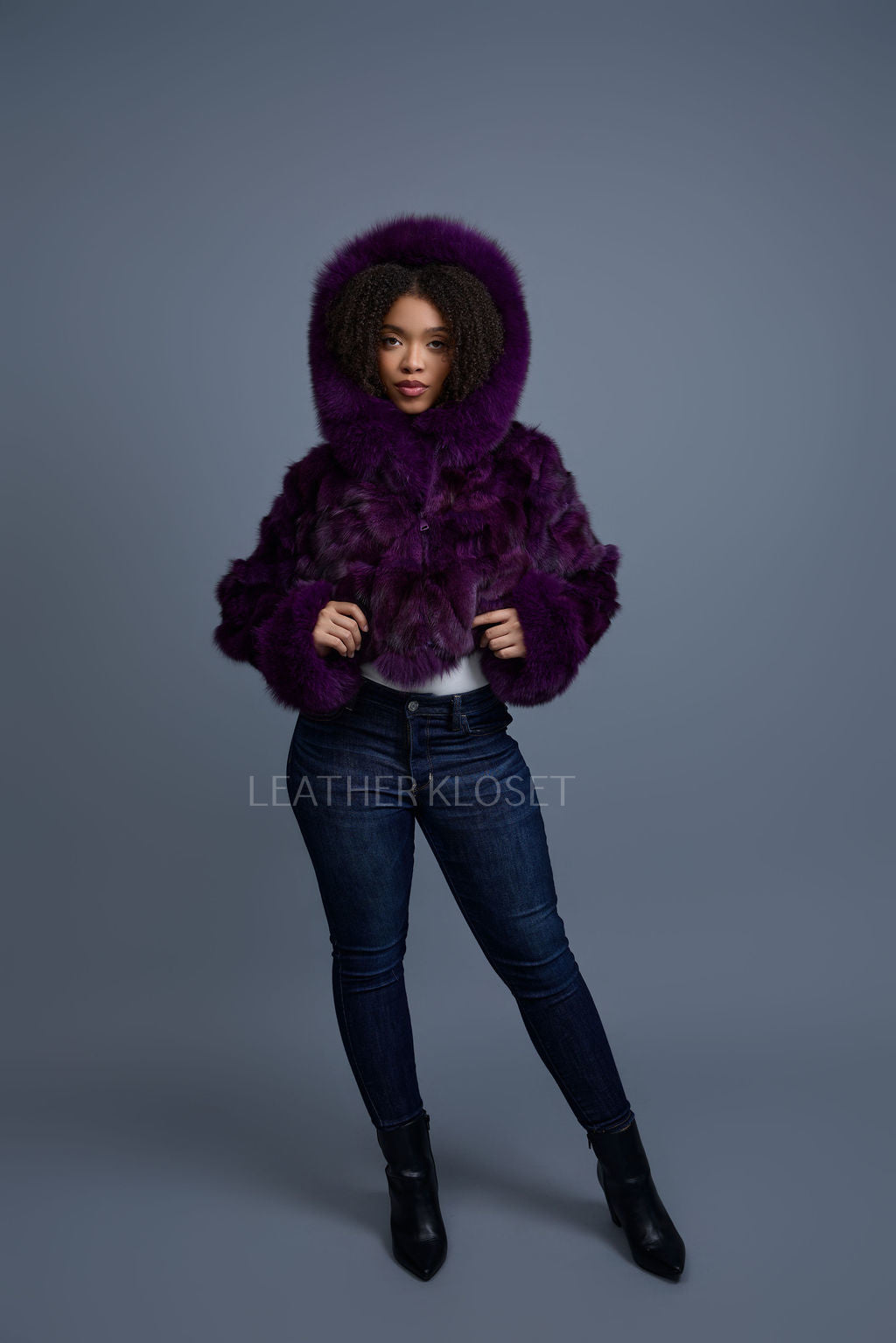 Women's Crop Fox Bomber With Hood [Hot Pink]
