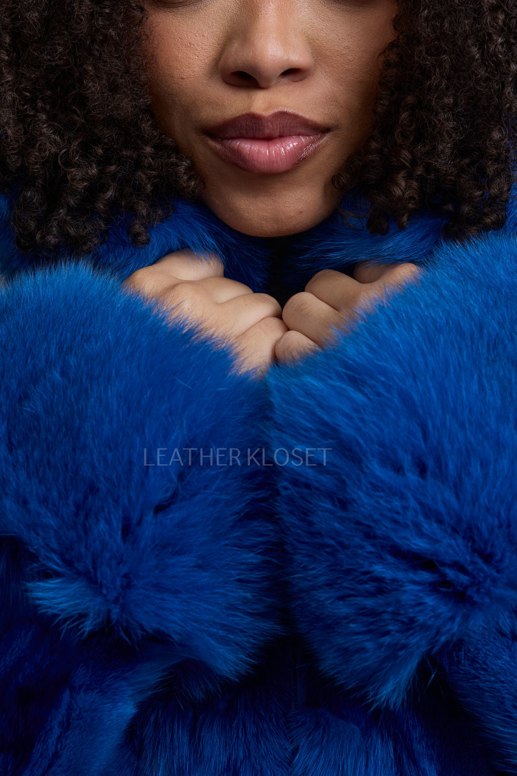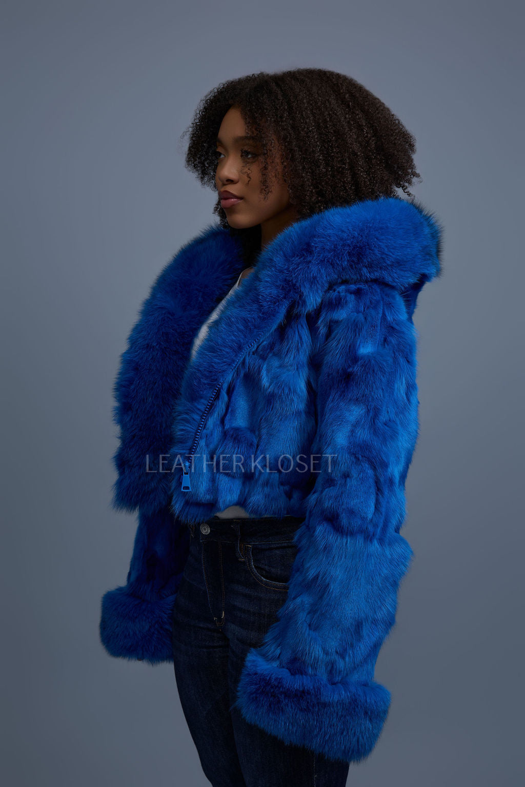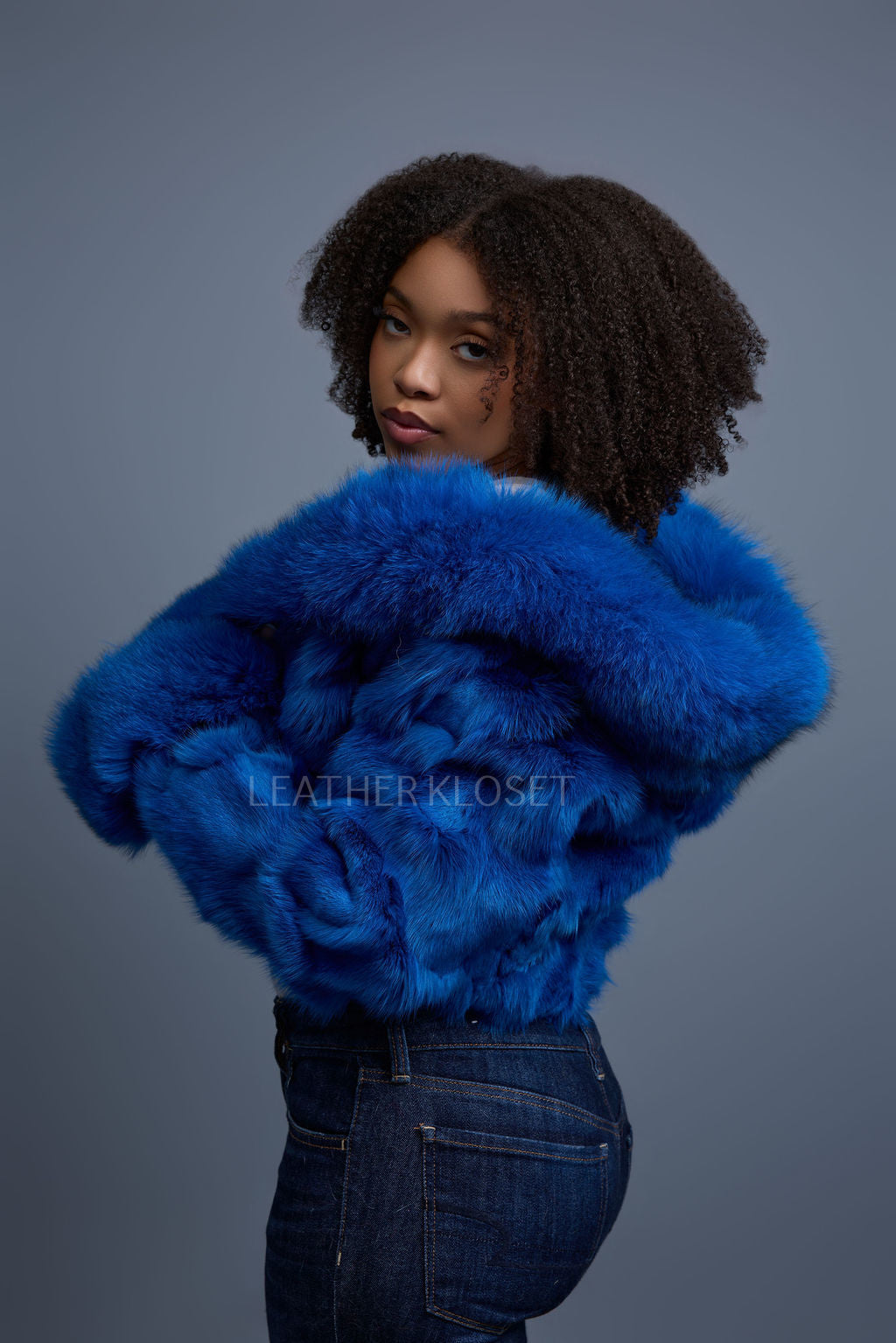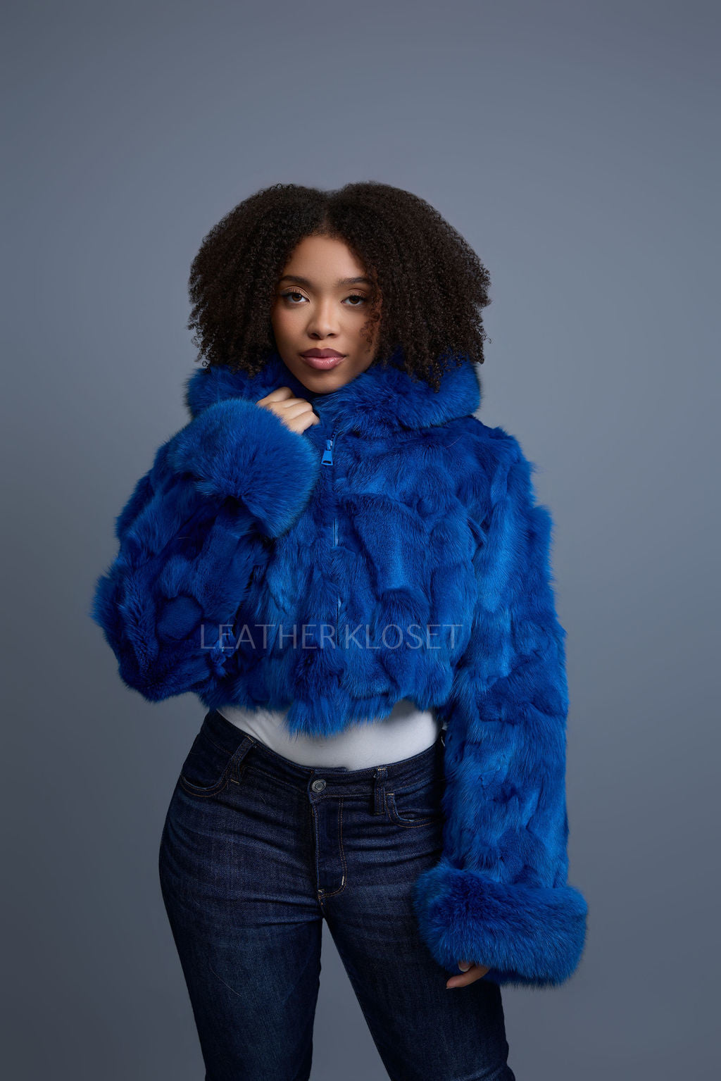 Women's Crop Fox Bomber With Hood [Royal Blue]