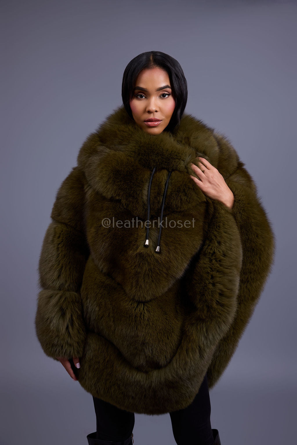 Women's Fox Fur Poncho [Olive]