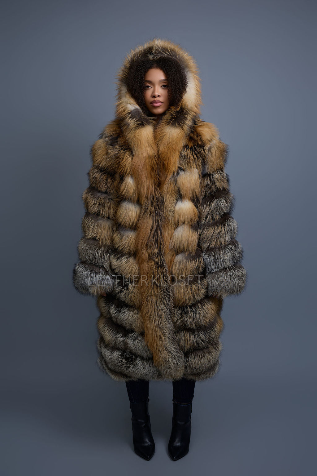 Women's Mink Bomber With Chinchilla Collar And Hood [Green]