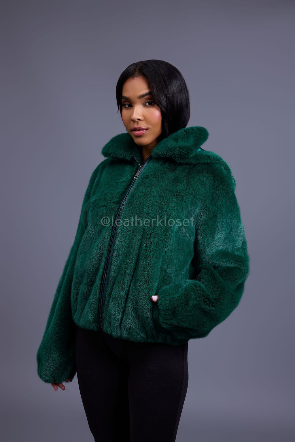 Women's Michelle Full Skin Mink Bomber Jacket [Green]