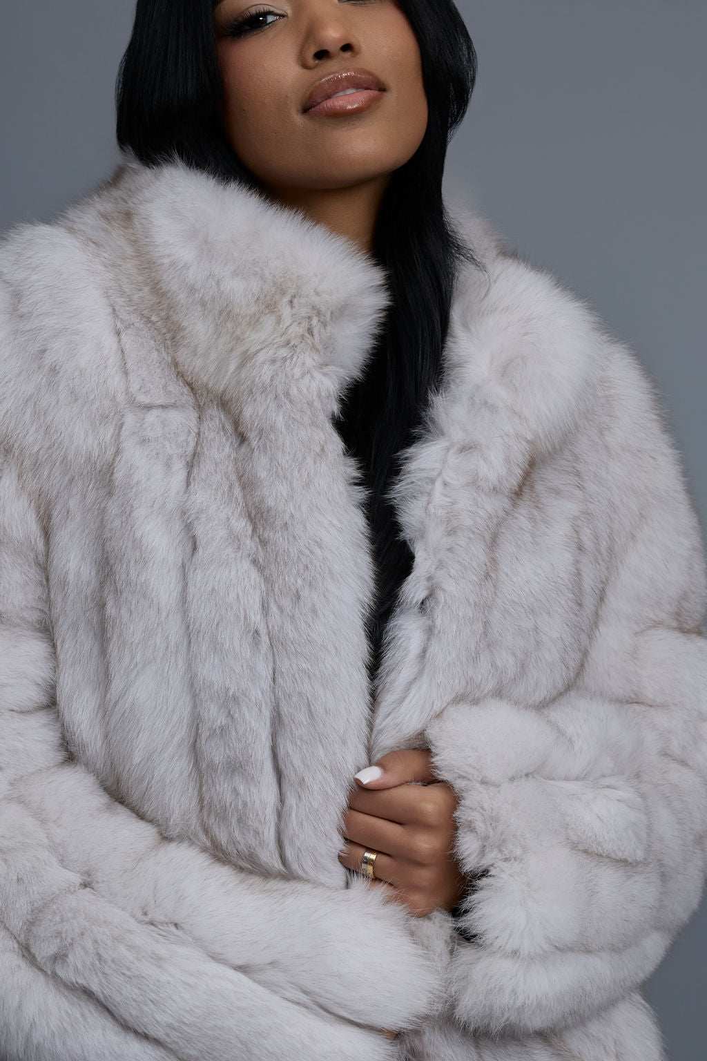 Women's Crop Persian Lamb Cleopatra Bomber With Hood [Grey]