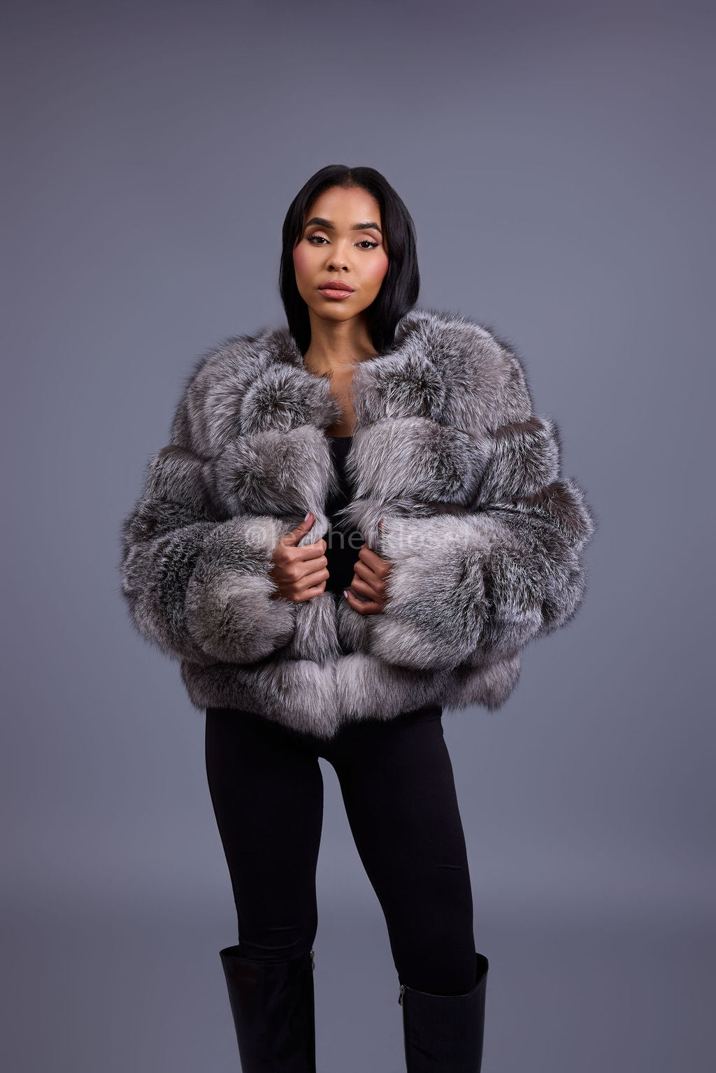 Women's Michelle Full Skin Mink Bomber Jacket [Black]