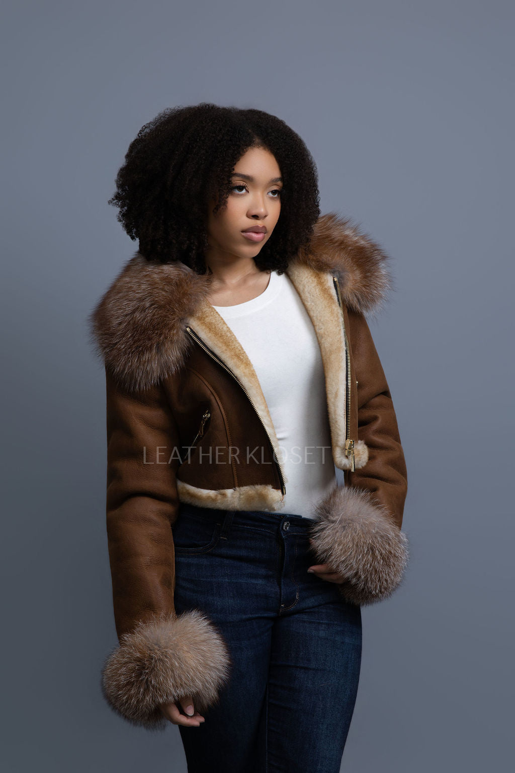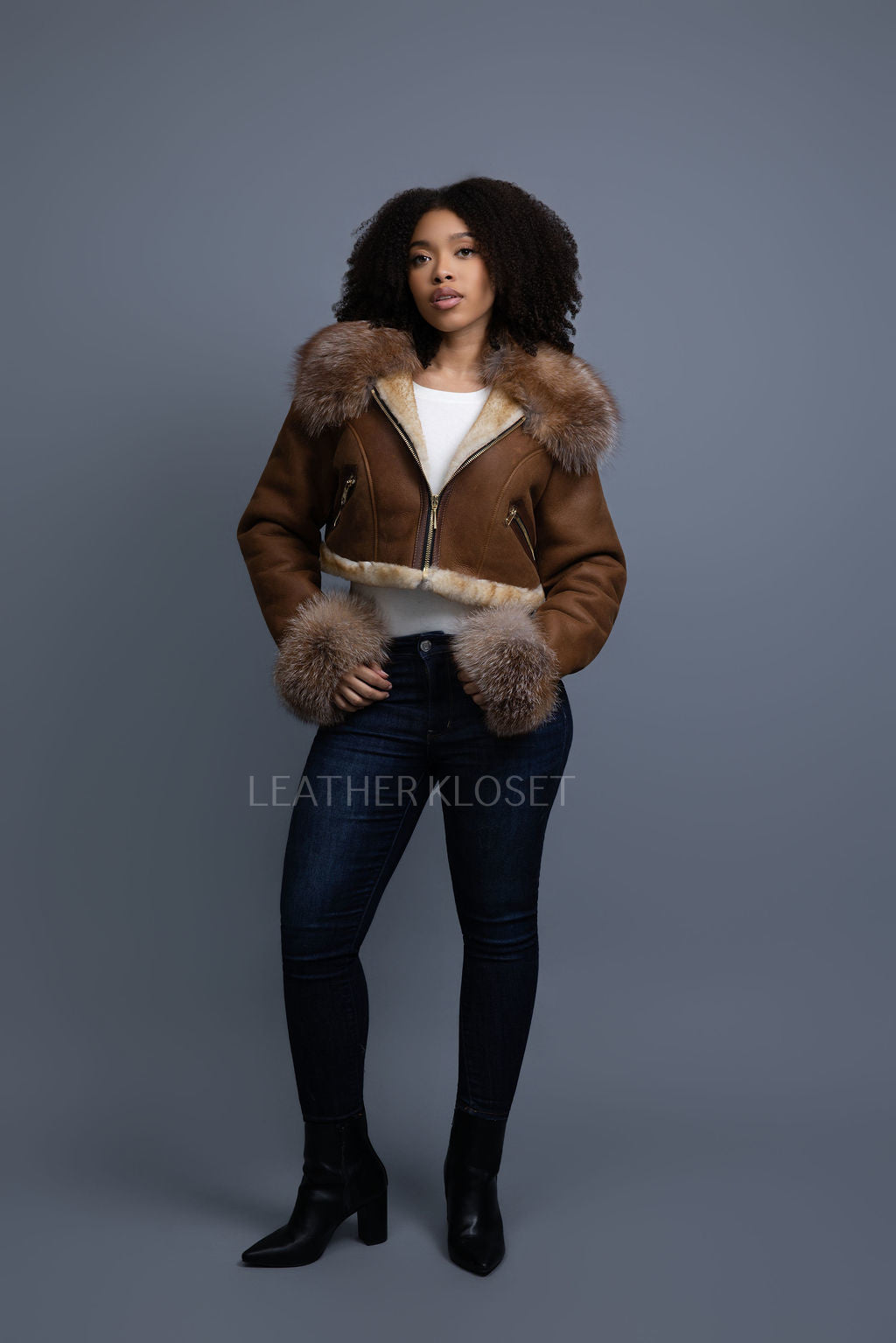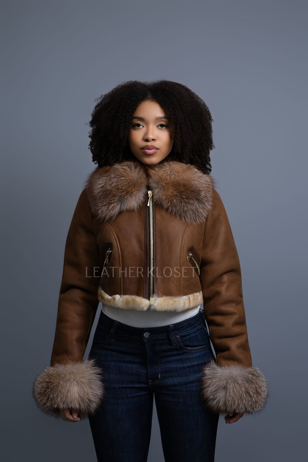 Women's Aurora Crop Sheepskin Jacket With Fox