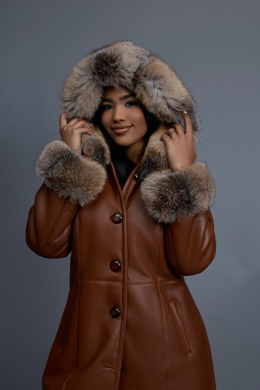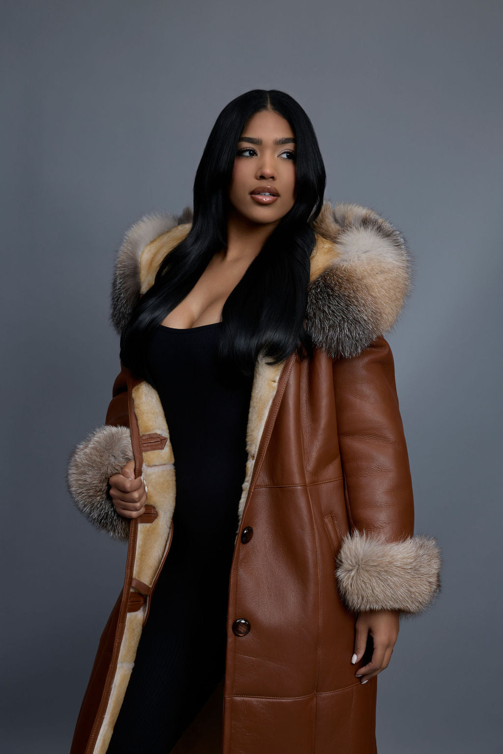 Women's Margo Shearling Sheepskin Jacket With Fox [Whiskey Napa]