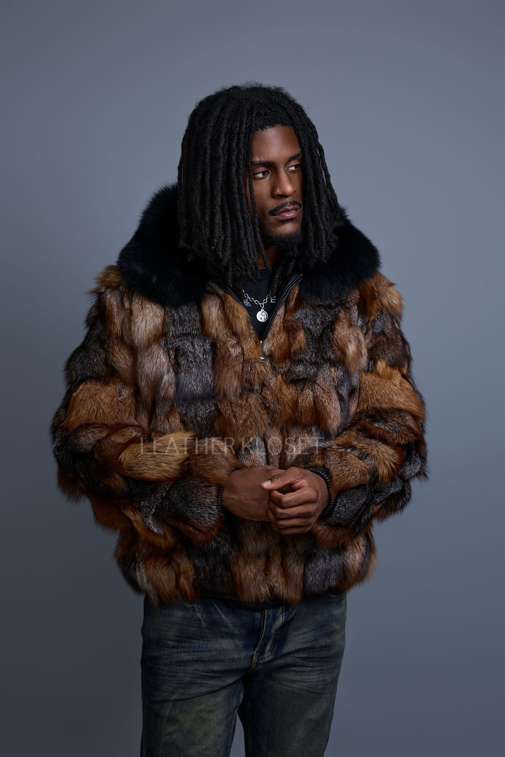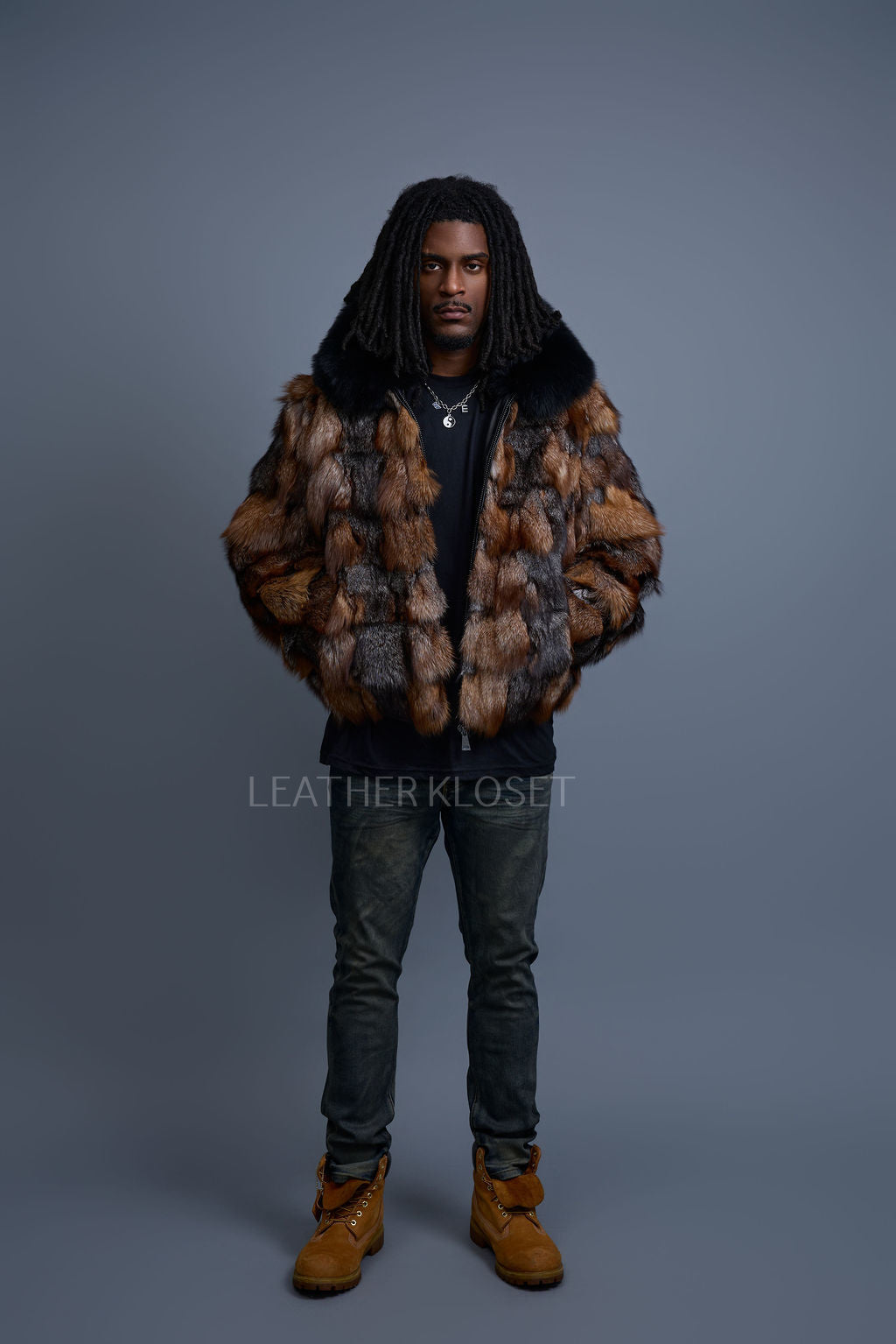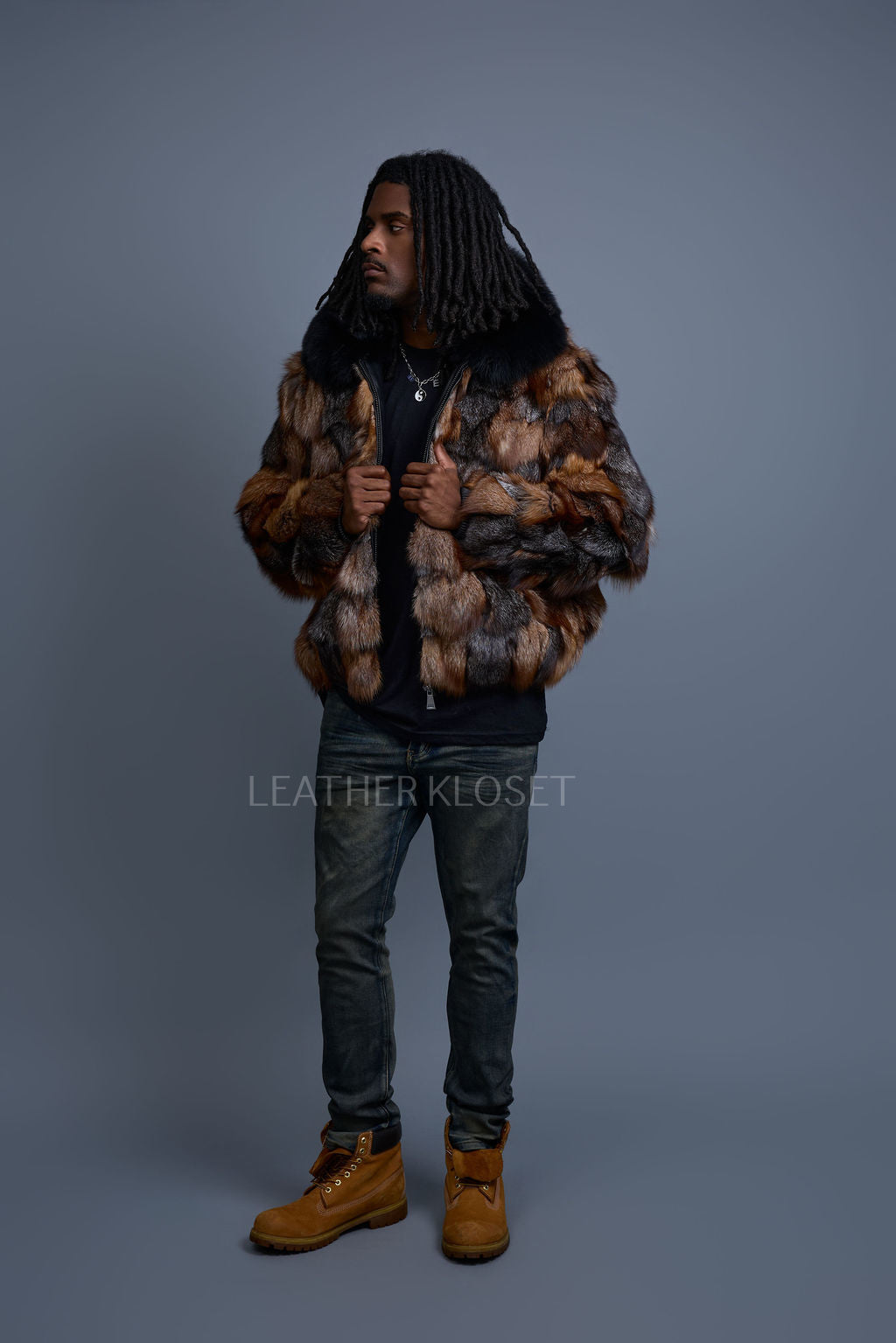 Men's Hudson Fox Fur Bomber Jacket [Crystal]
