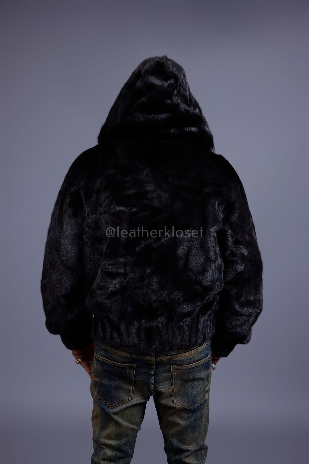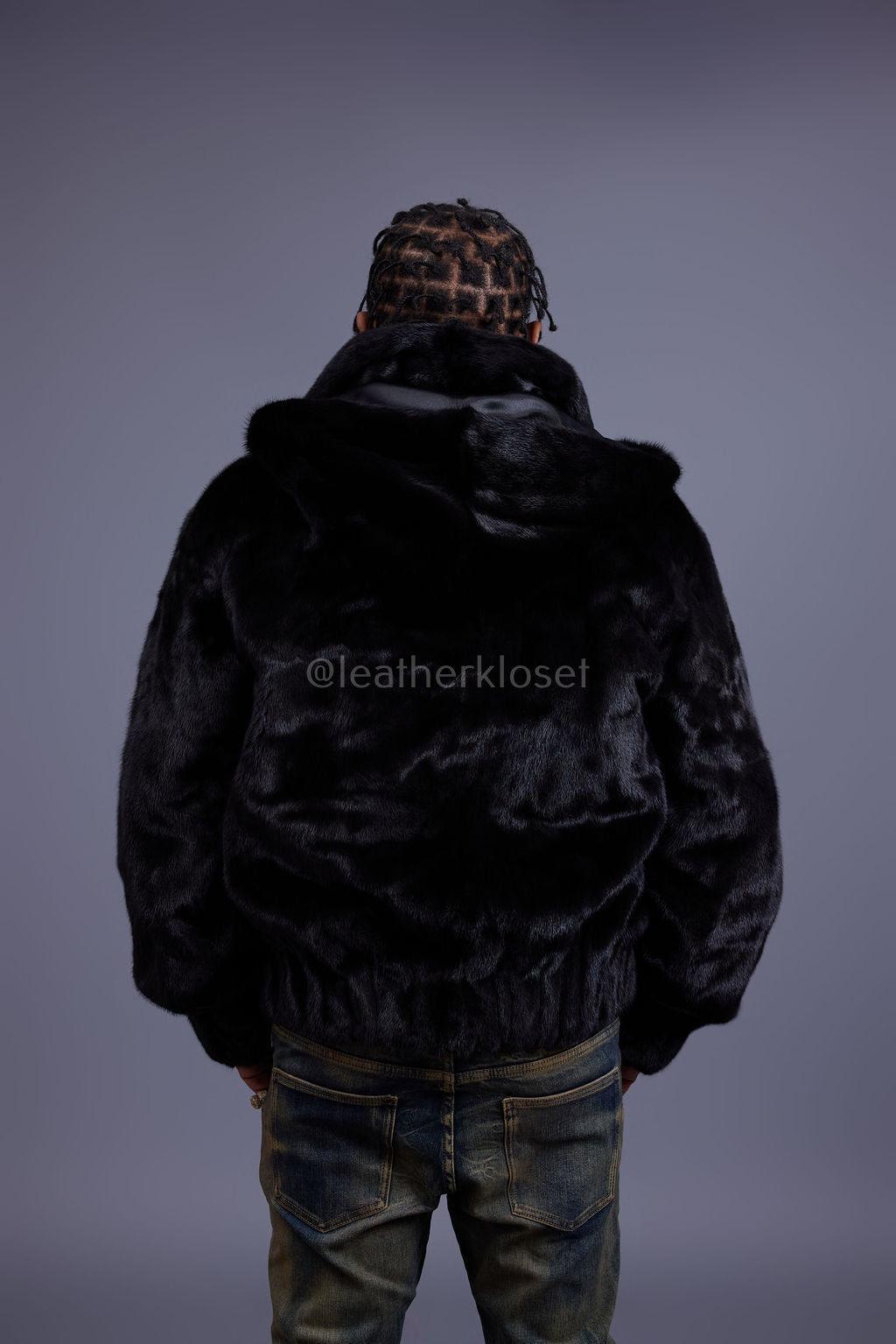Men's Full-Skin Mink Bomber Jacket With Removable Hood [Black]