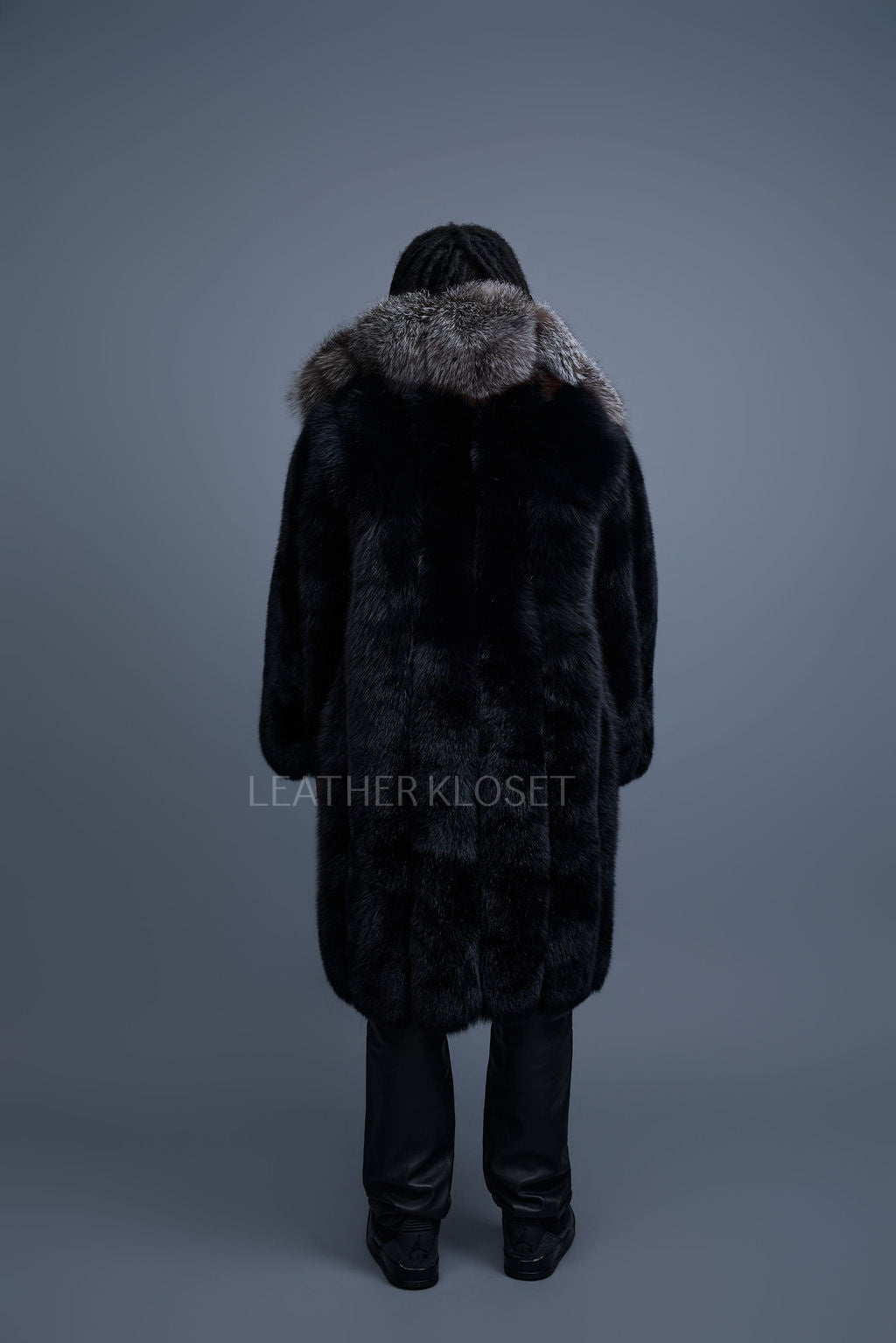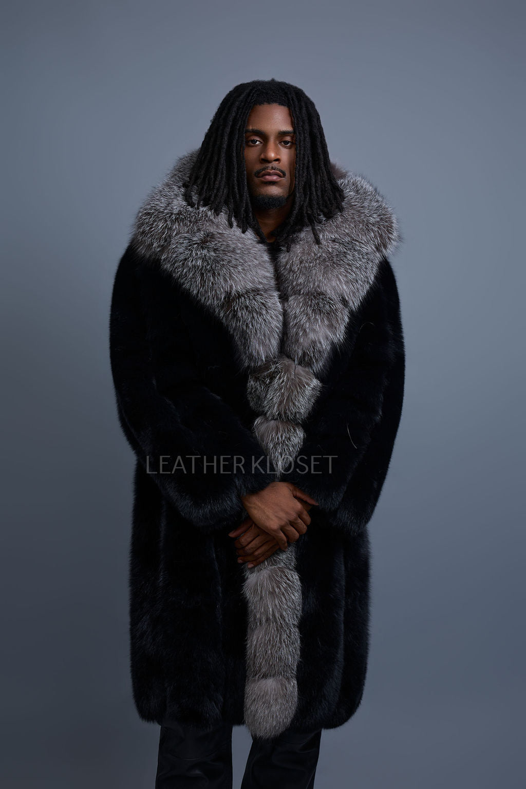 Men's Jason Long Fox Trench Coat [Black/Silver]