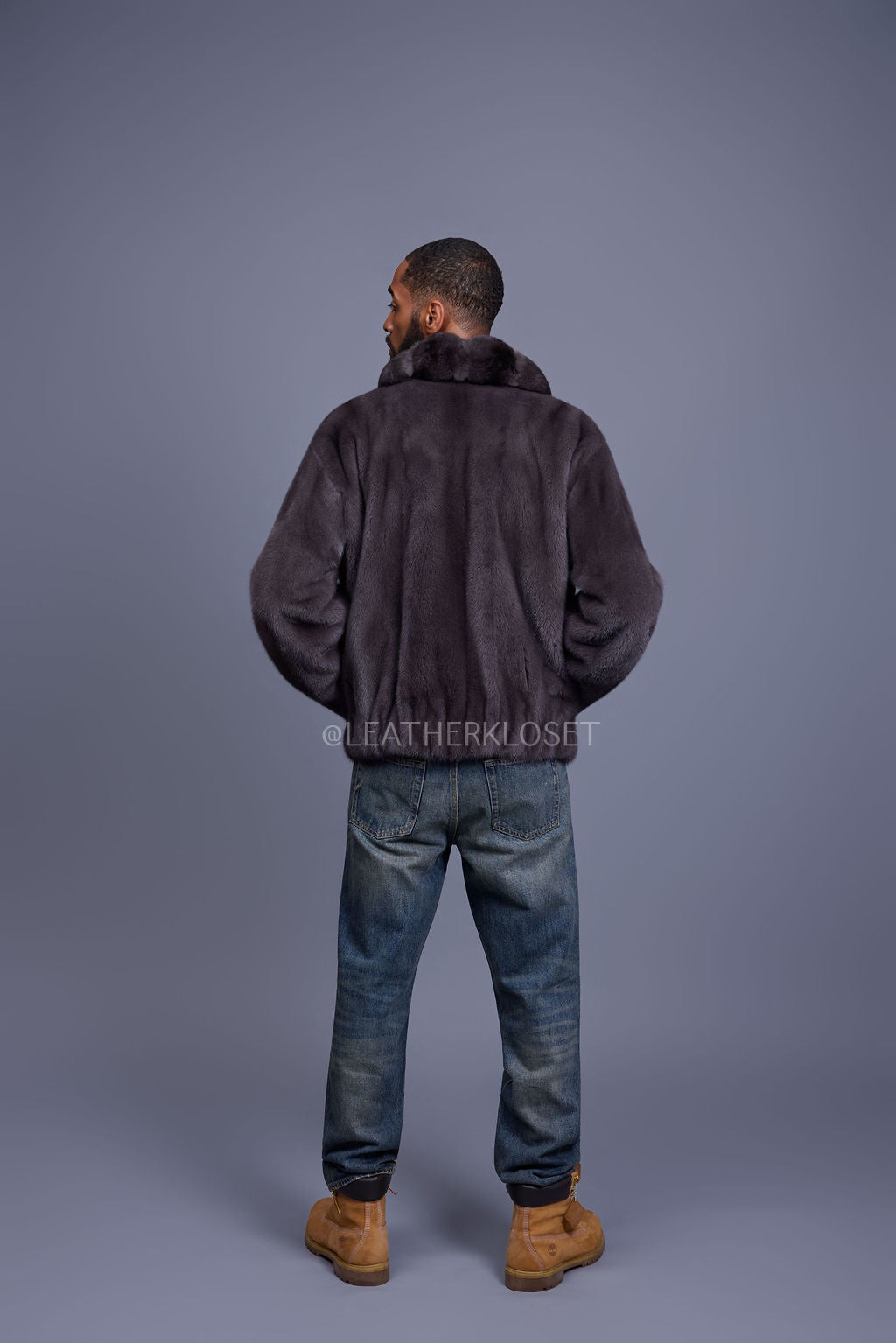 Men's Full Skin Mink Bomber Jacket With Collar [Dark Grey]