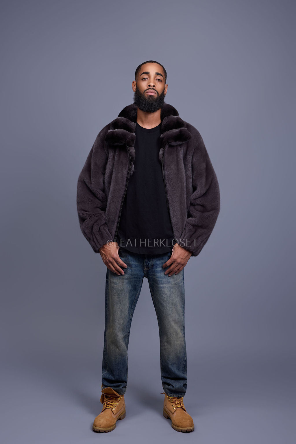 Men's Mink Bomber Jacket With Chinchilla Collar [Dark Grey]