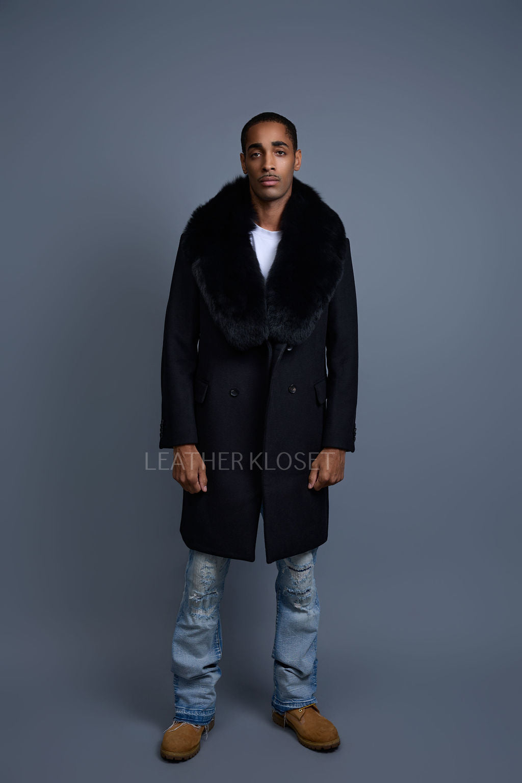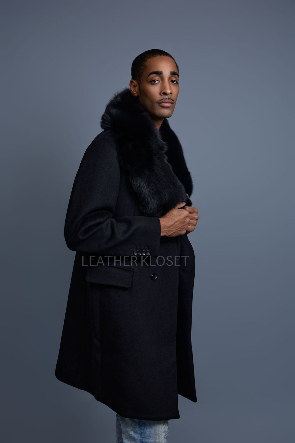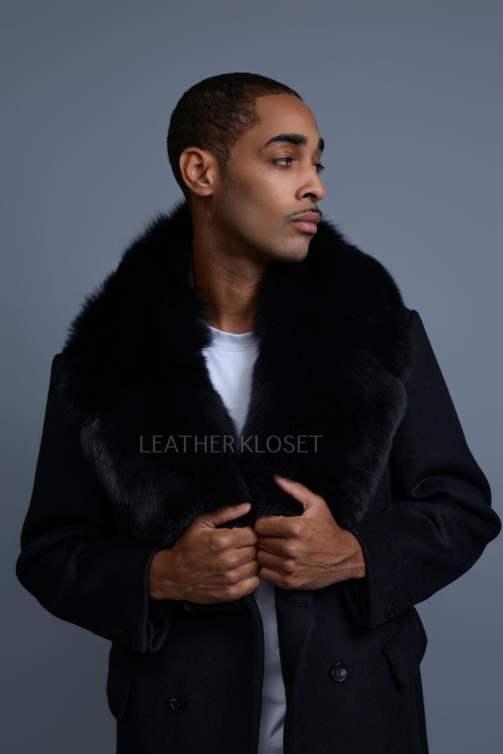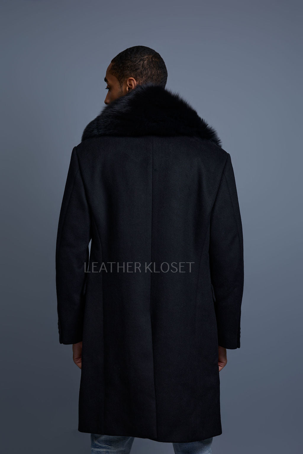 Men's Cashmere Trench Coat Black With Fox Collar [Black Fox]