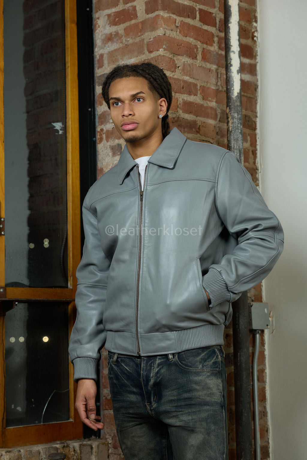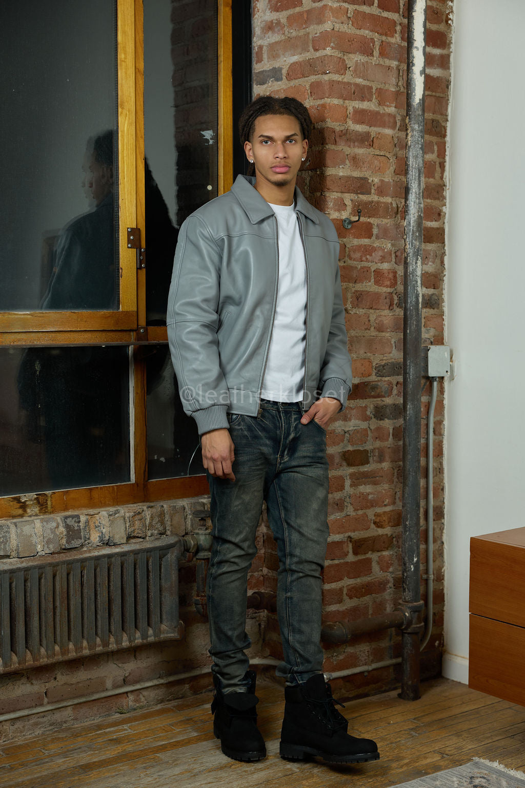 Men's Classic Baseball Leather Jacket With Collar [Gray]
