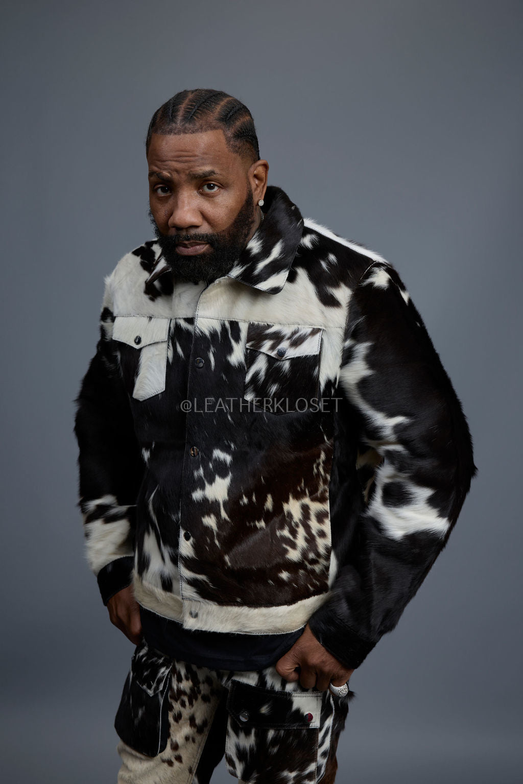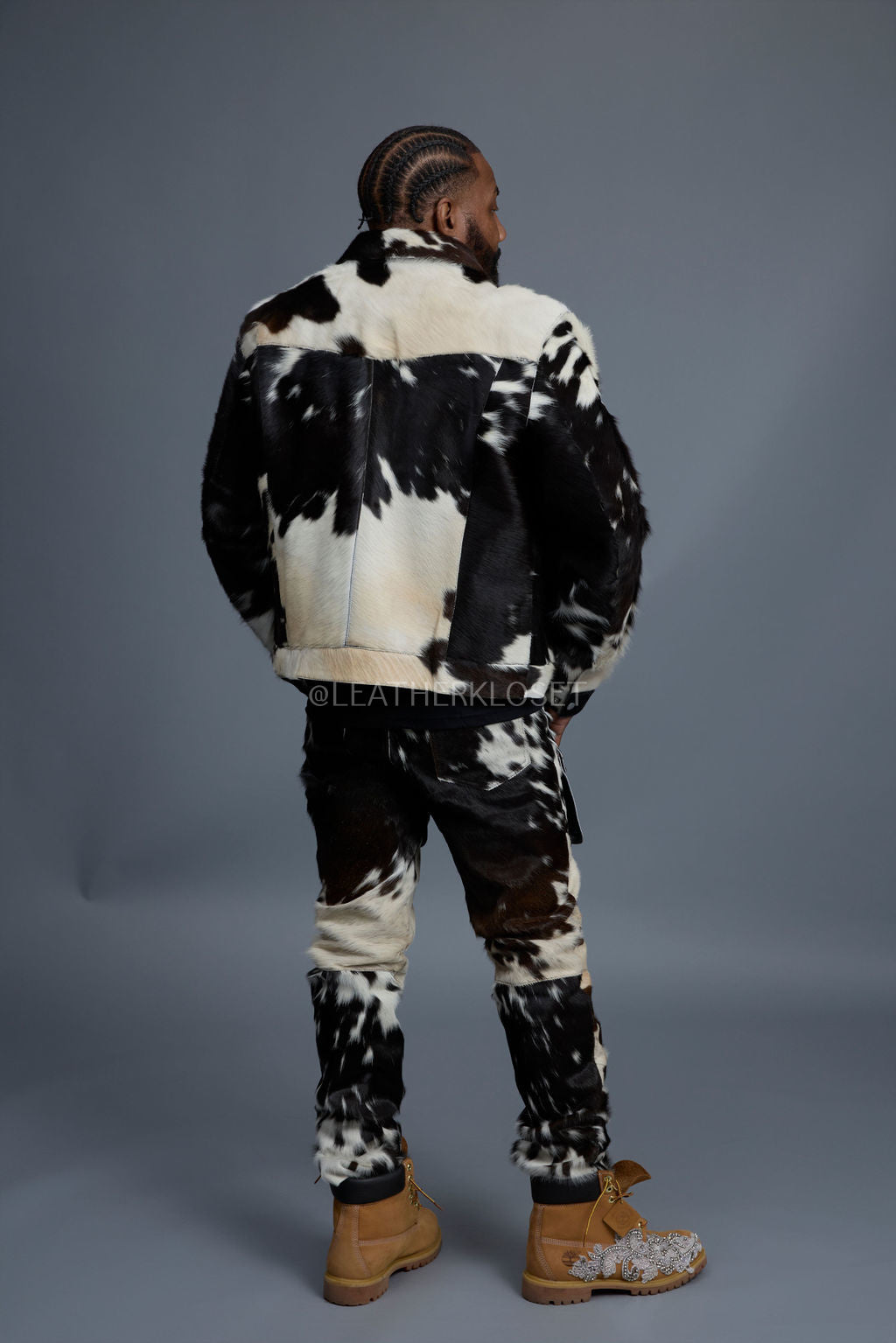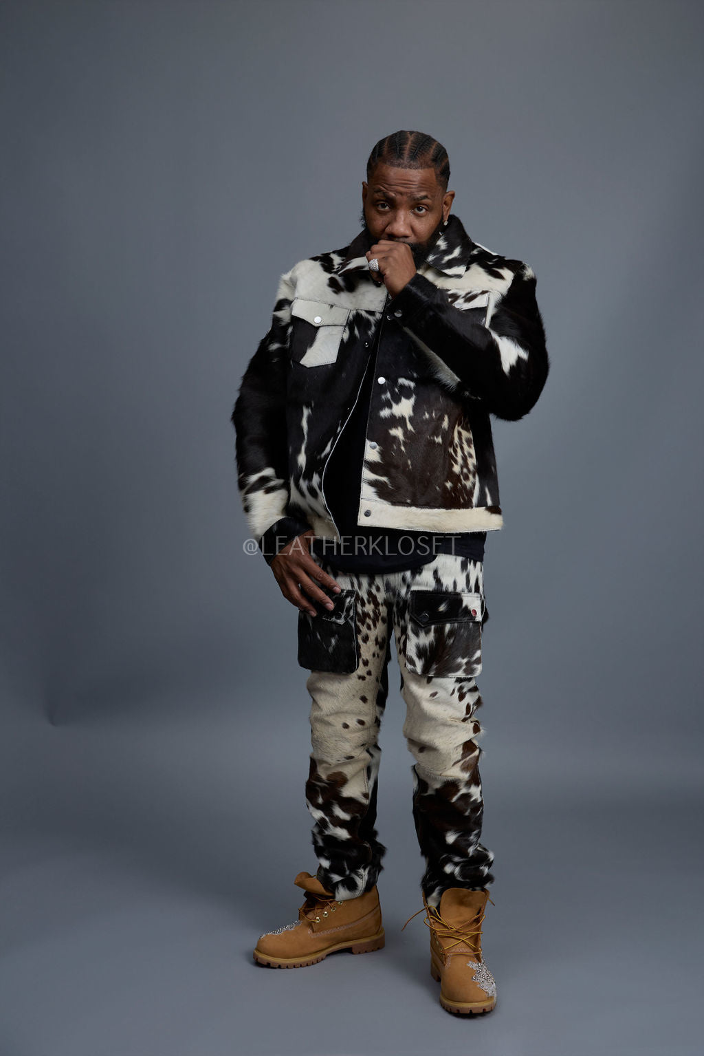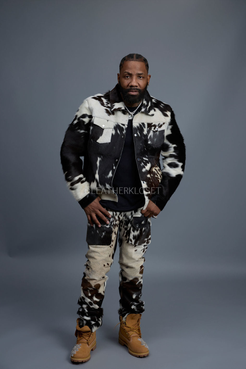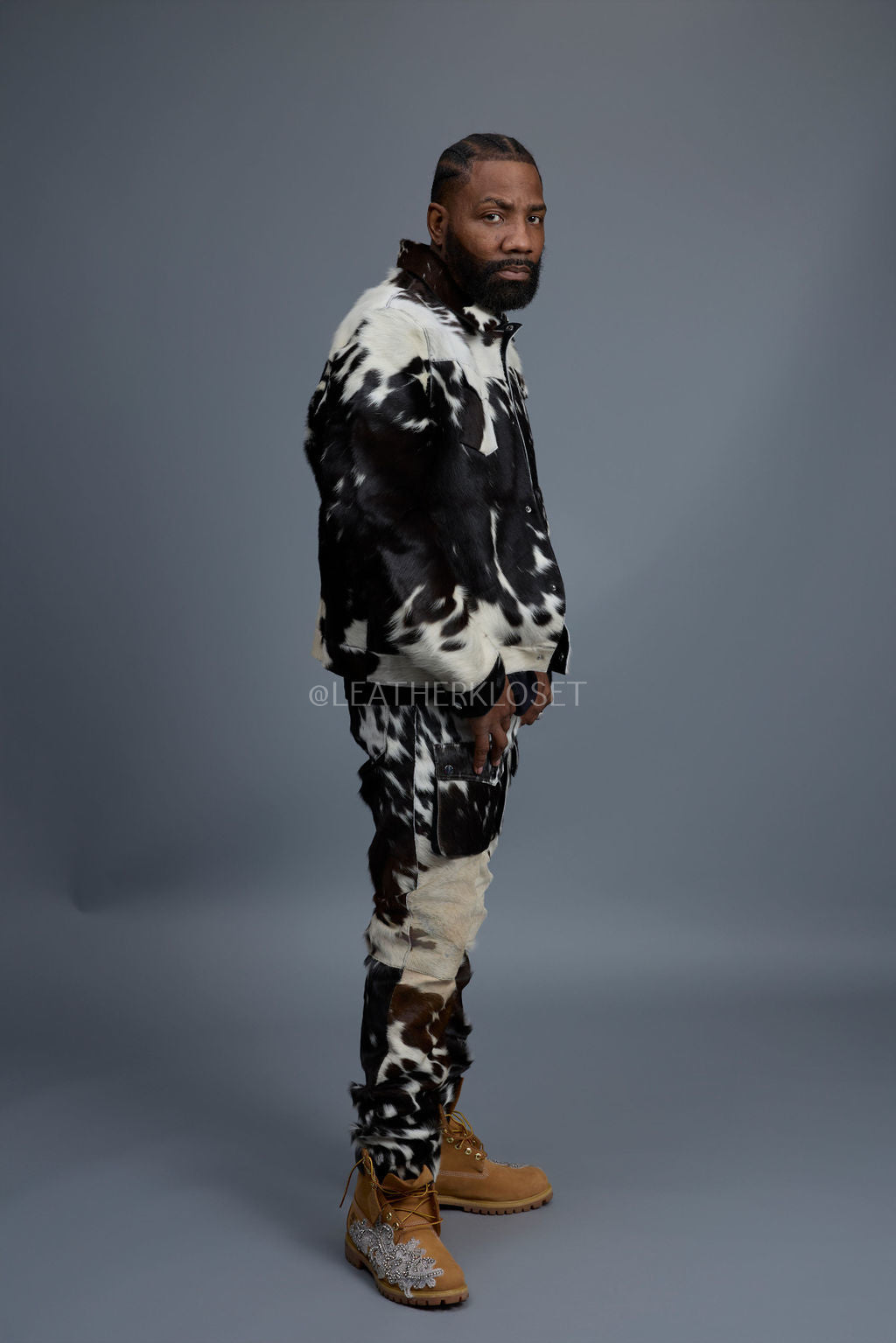 Men's Dylan Pony Skin Jean Jacket And Cargo Pants Set [Natural]