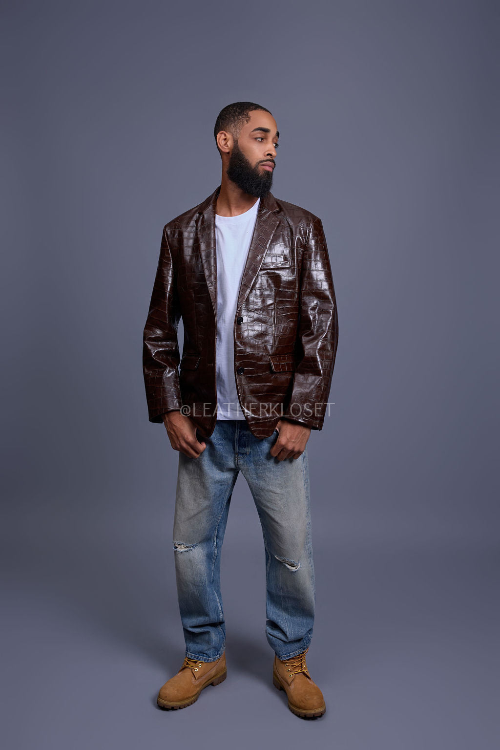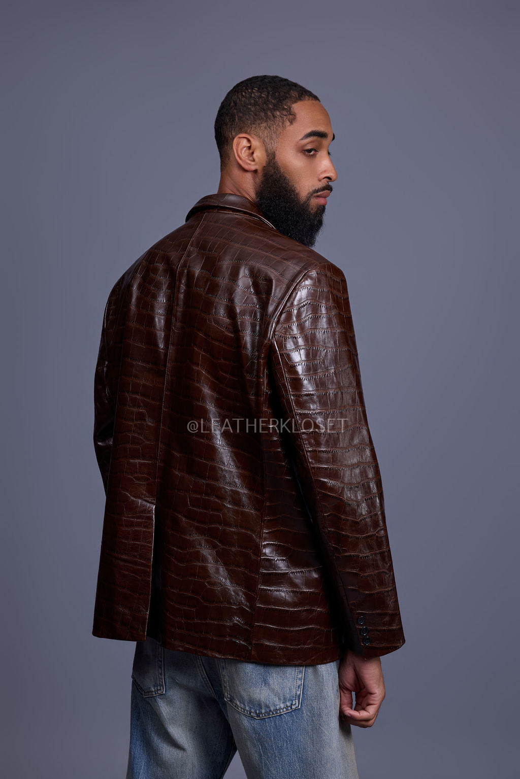 Men's Embossed Crocodile Leather Blazer [Brown]