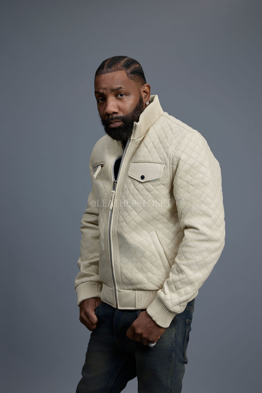 Men's Franklin Quilted Leather Bomber Jacket [Beige]