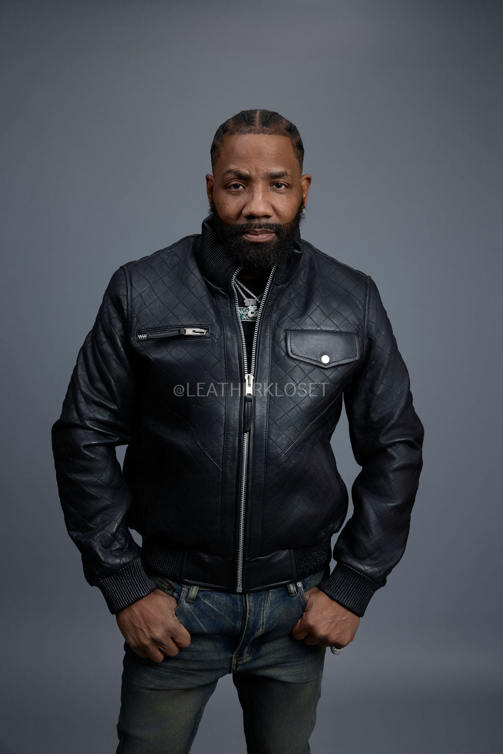Men's Franklin Quilted Leather Bomber Jacket [Black]