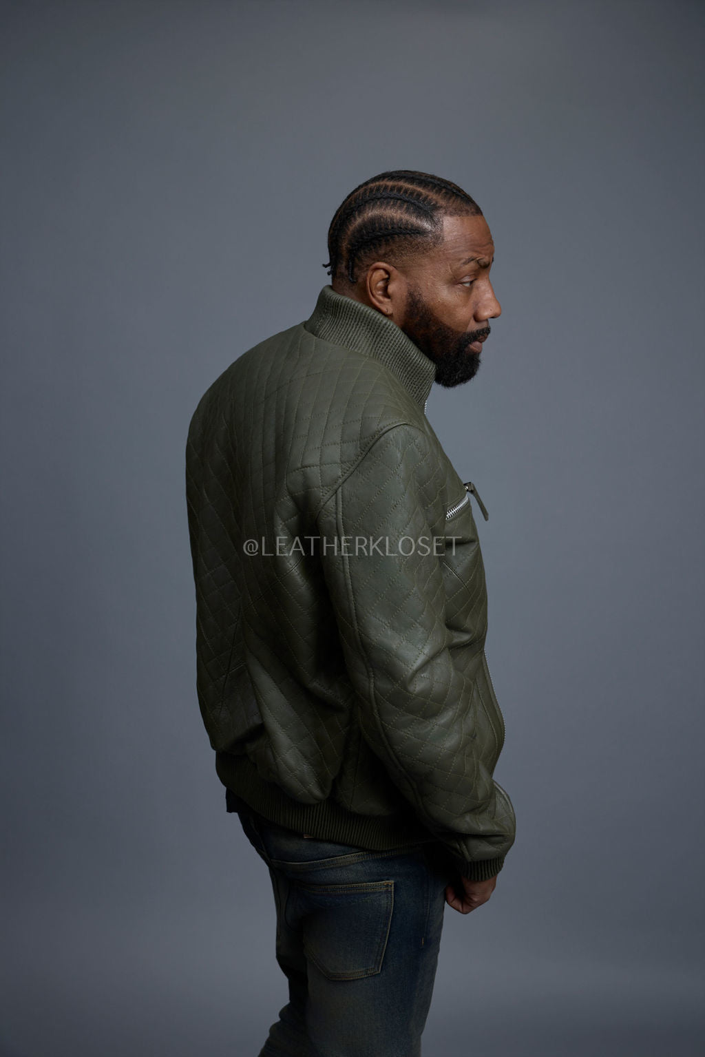 Men's Franklin Quilted Leather Bomber Jacket [Olive]