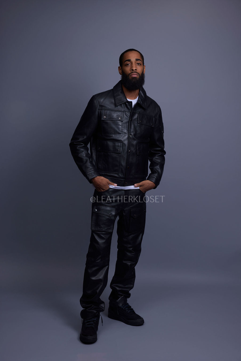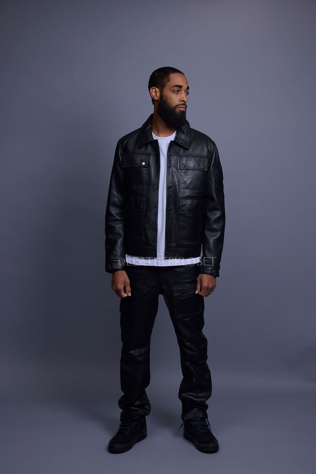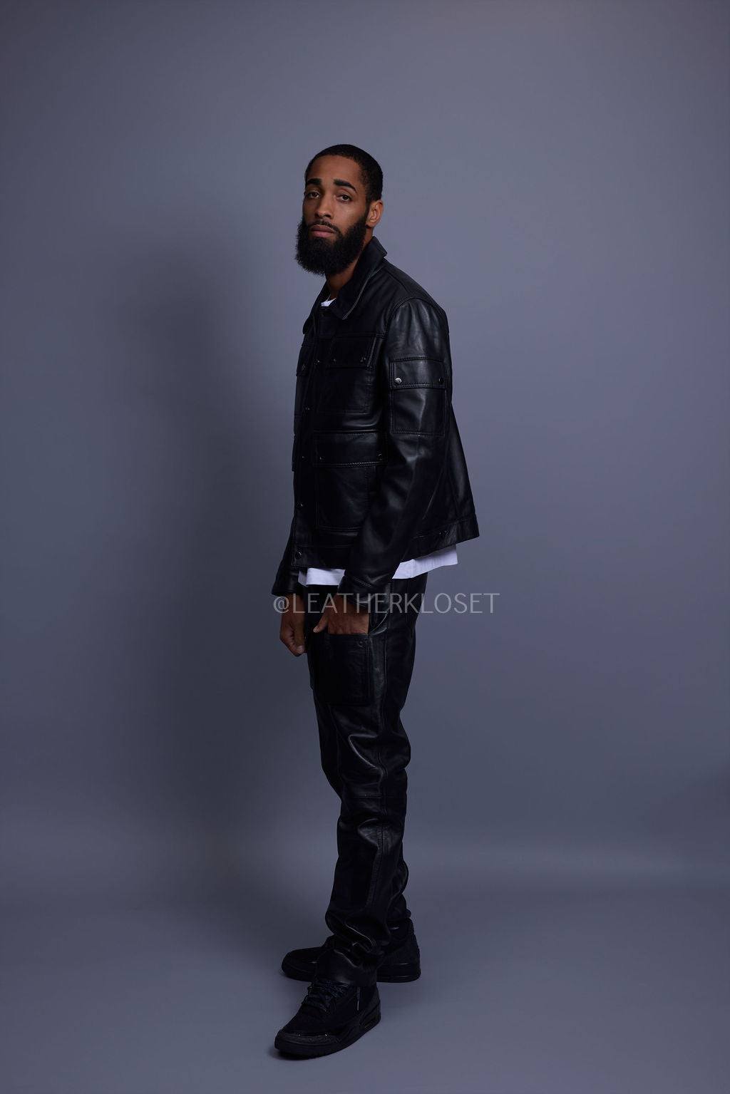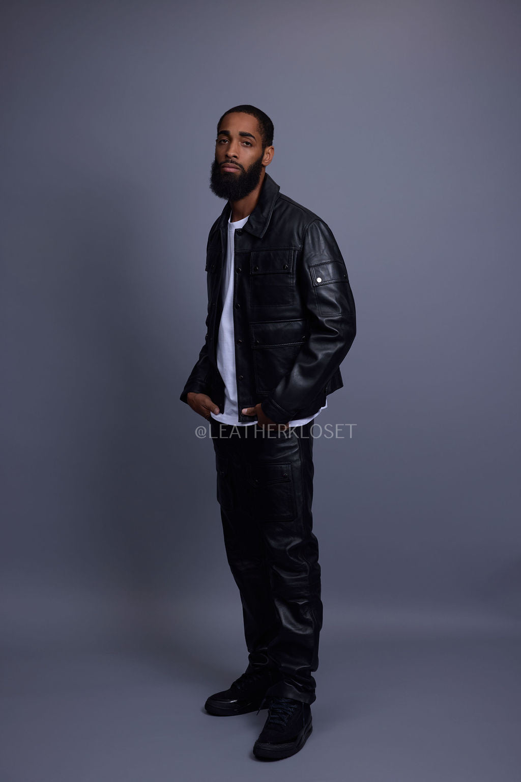 Men's Jax 2.0 Jean Jacket & Leather Cargo Pants [Black]