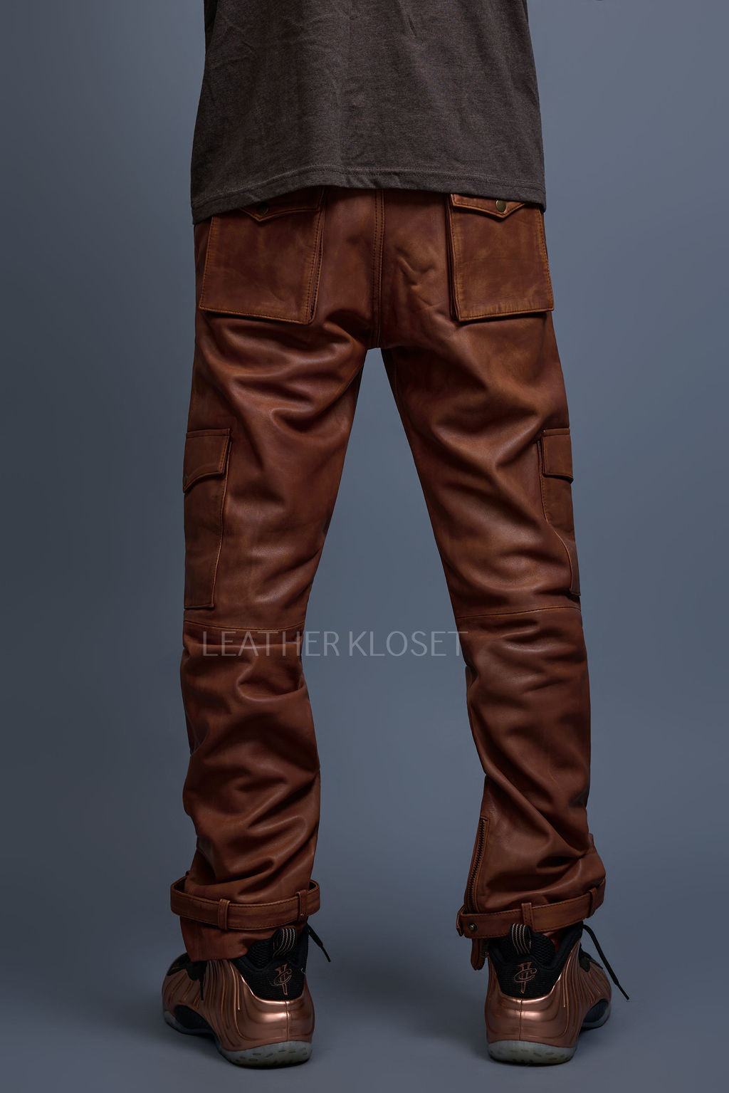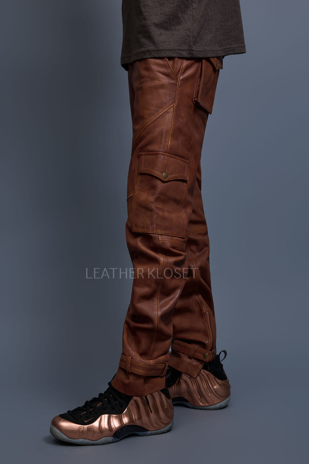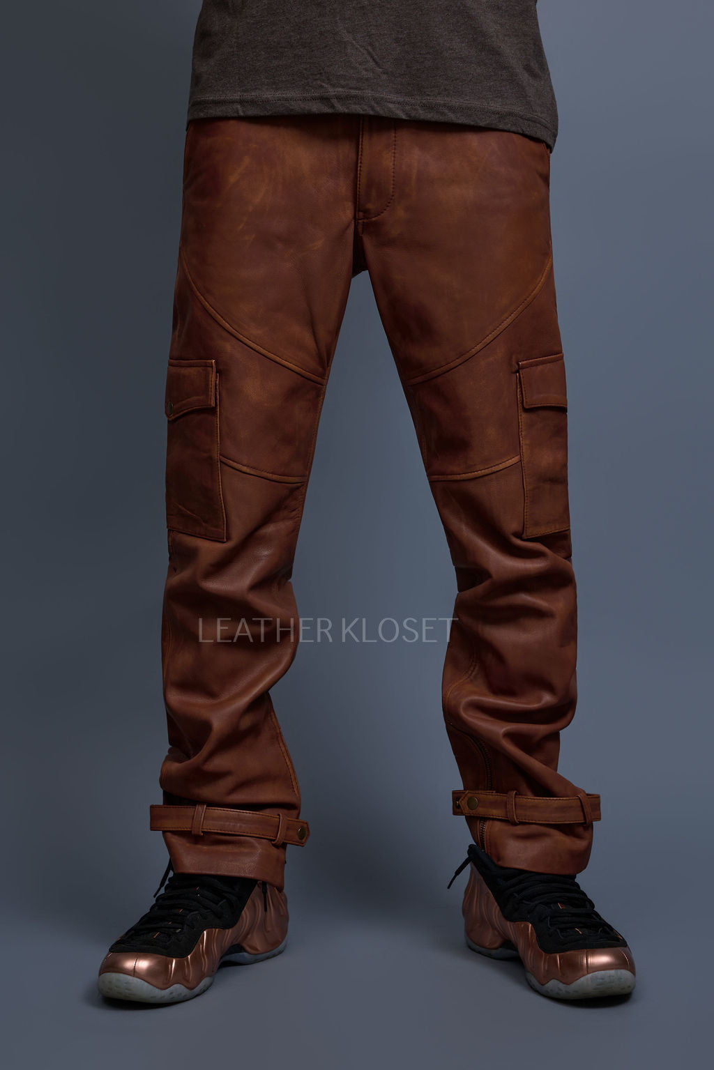 Men's Leather Stack Jean Pants [Caramel Crunch]