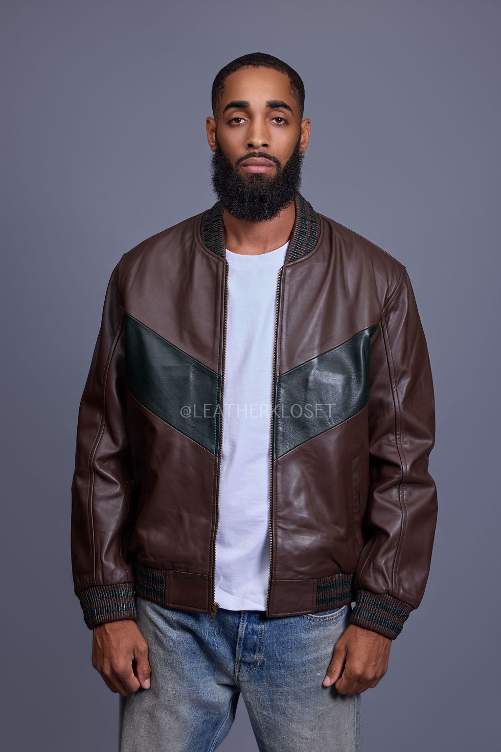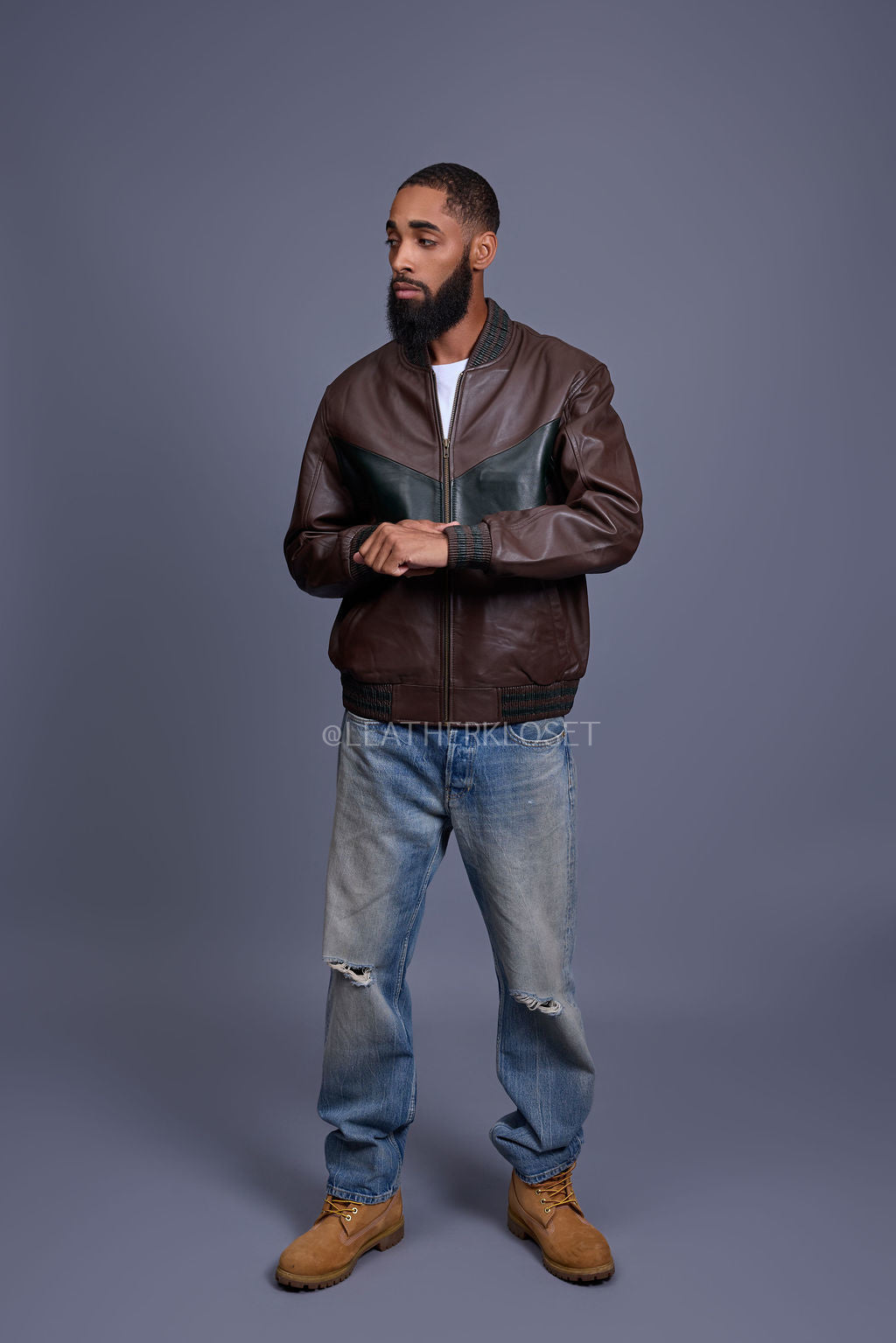 Men's Luka Leather Shirt And Stack Pants Set [Chocolate Brown]