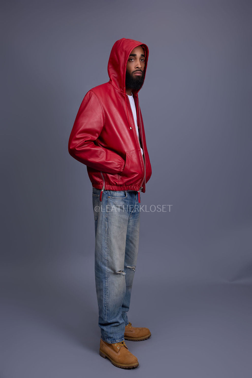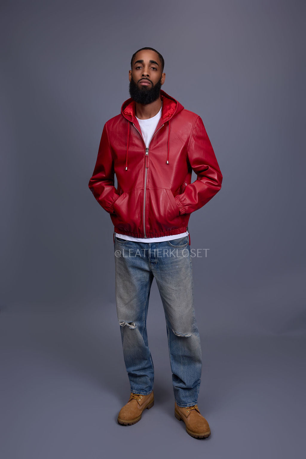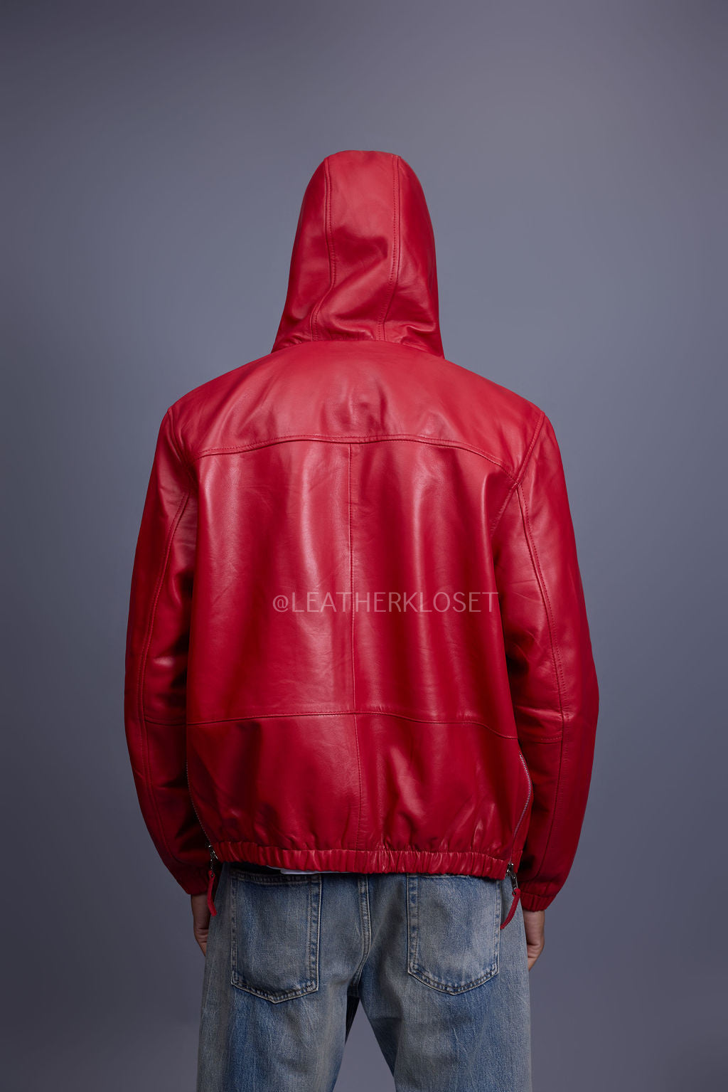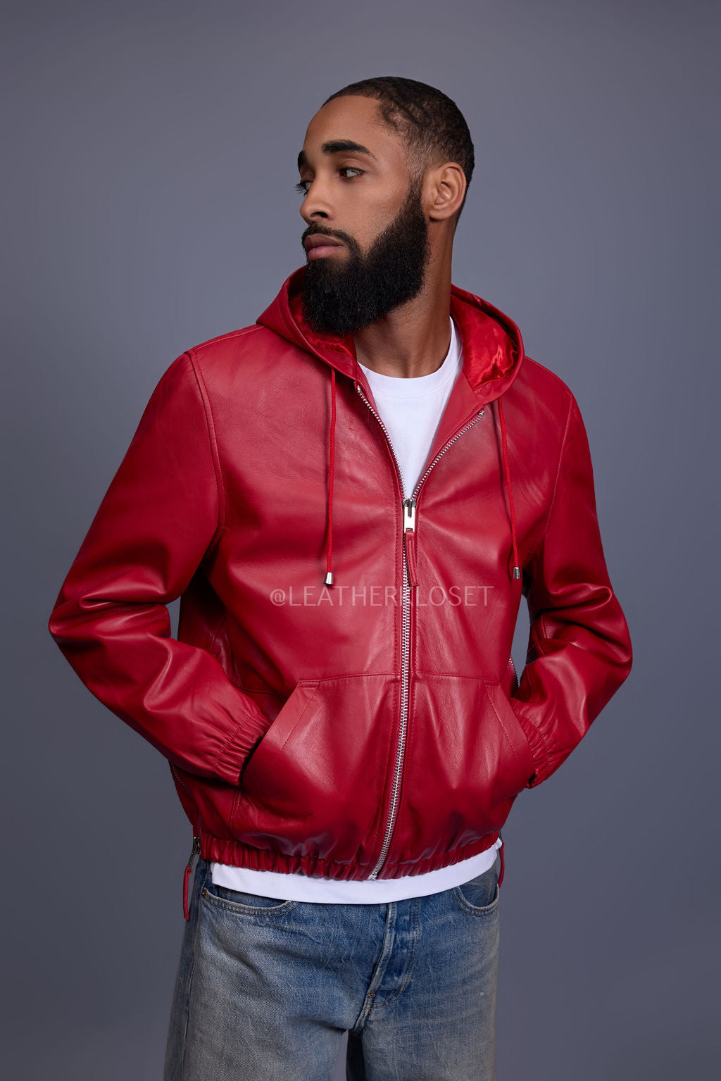 Men's Lucas Quilted Leather Bomber Jacket With Fox Hood [Silver Fox]