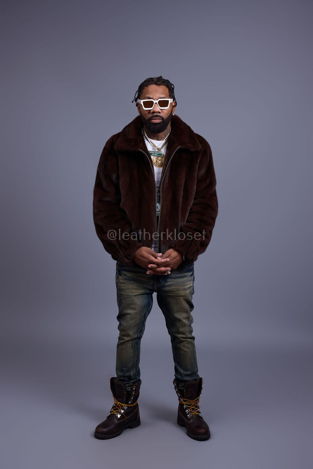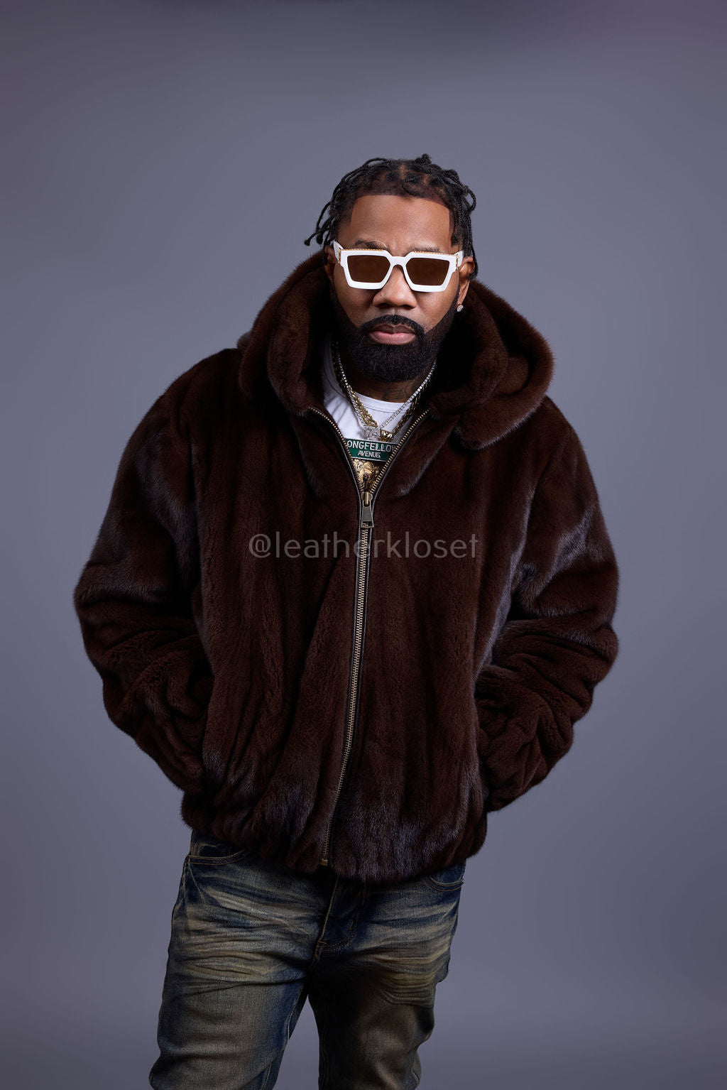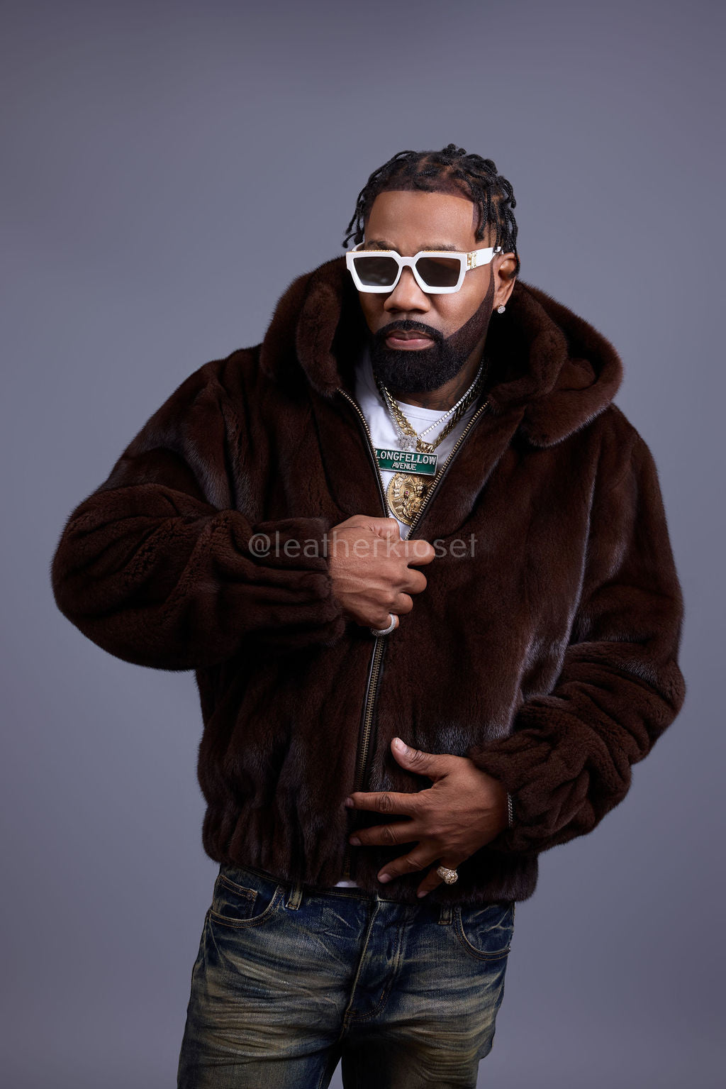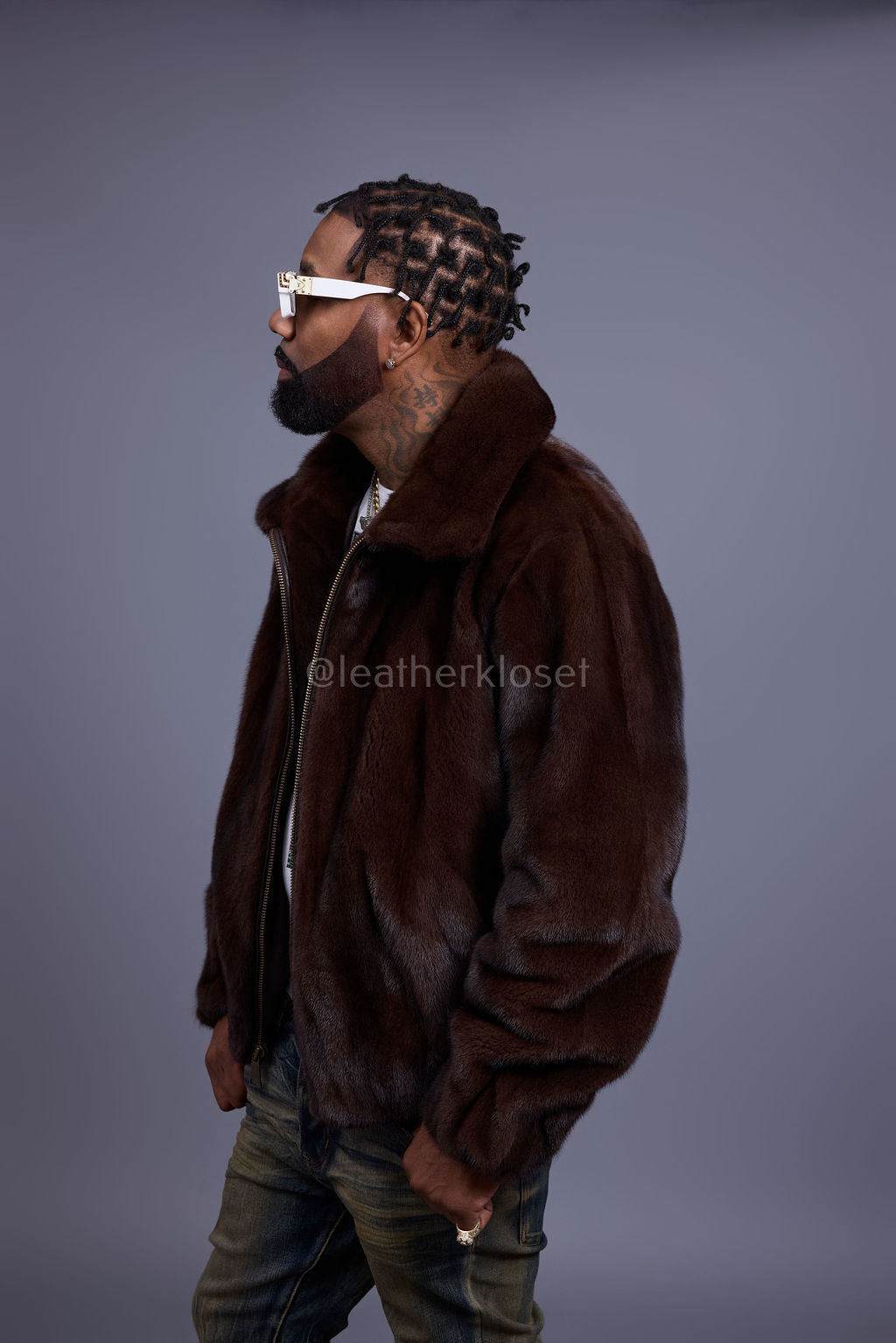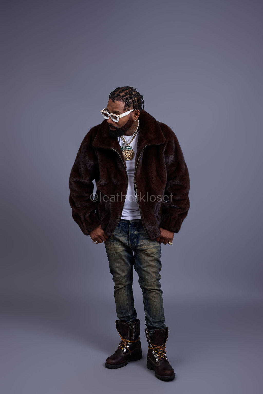 Men's Full-Skin Mink Bomber Jacket With Removable Hood [Chocolate]