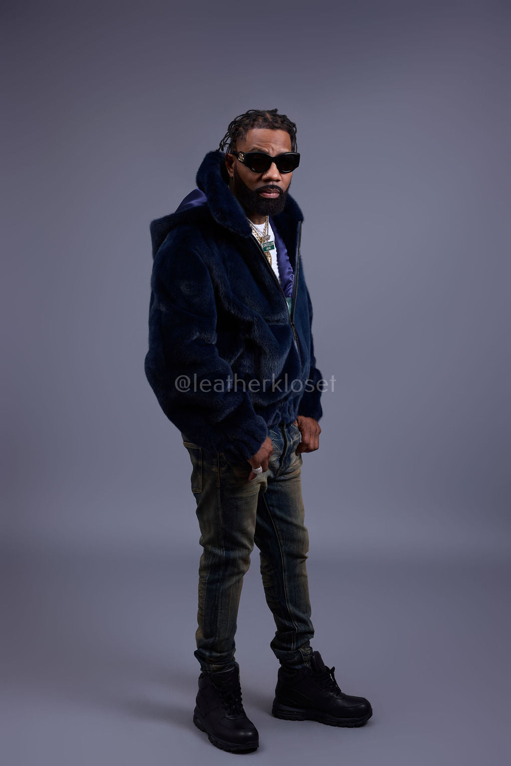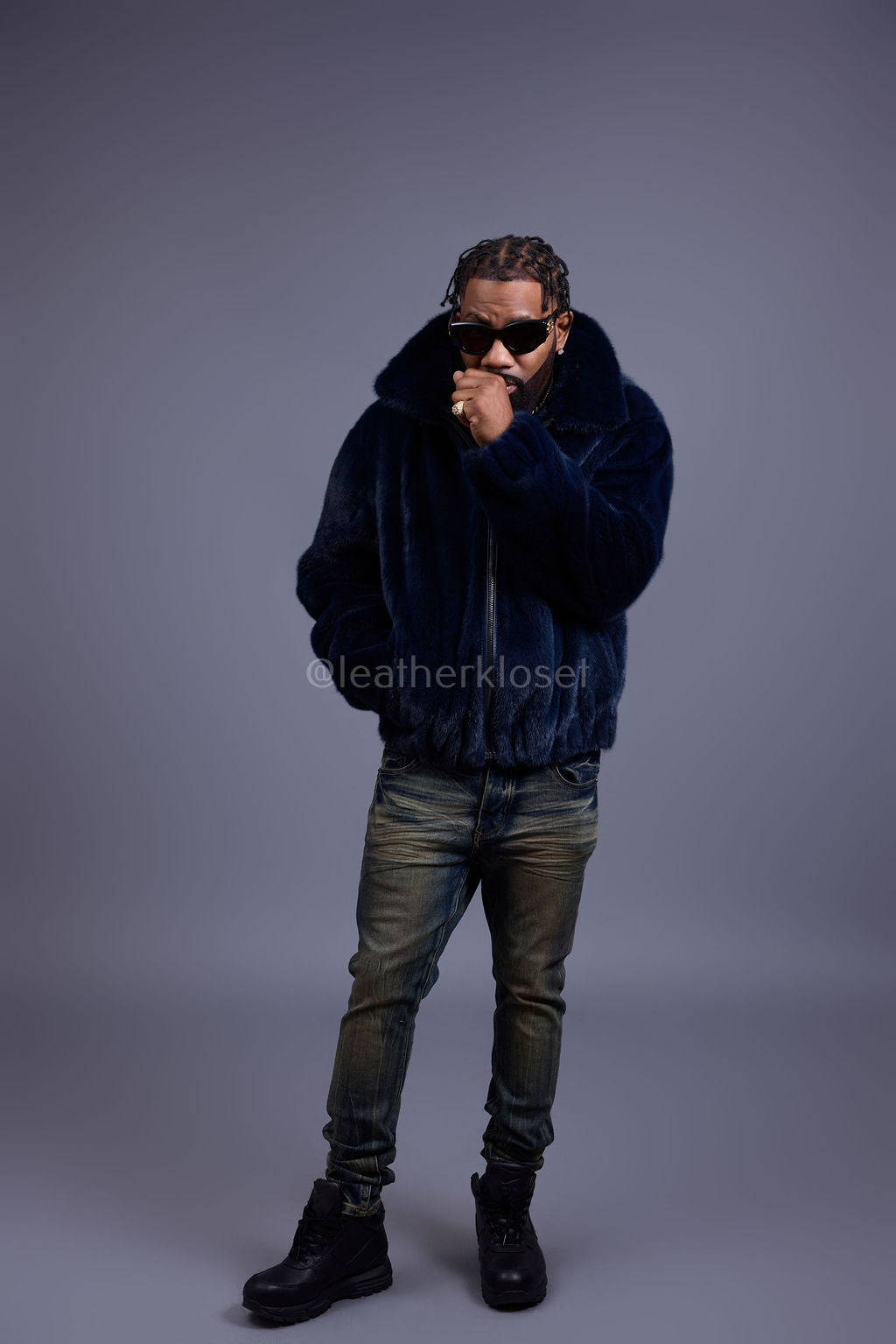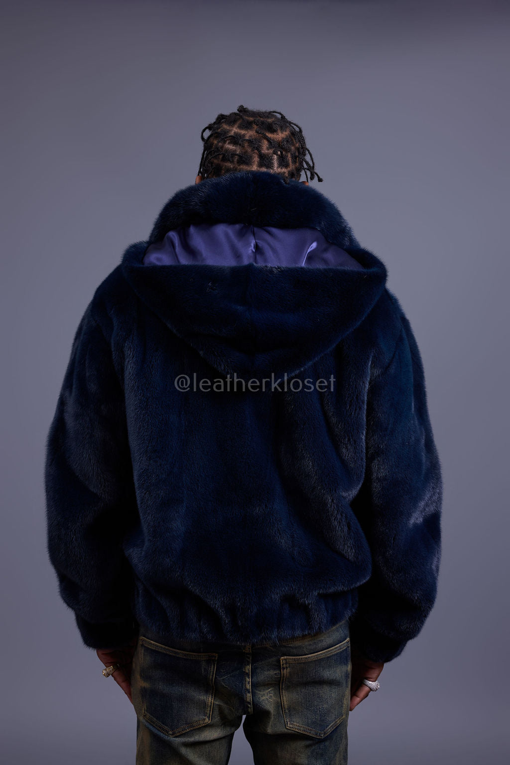 Men's Full-Skin Mink Bomber Jacket With Removable Hood [Navy]