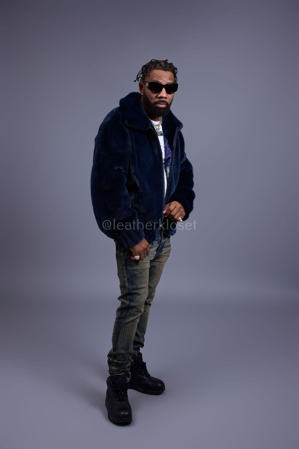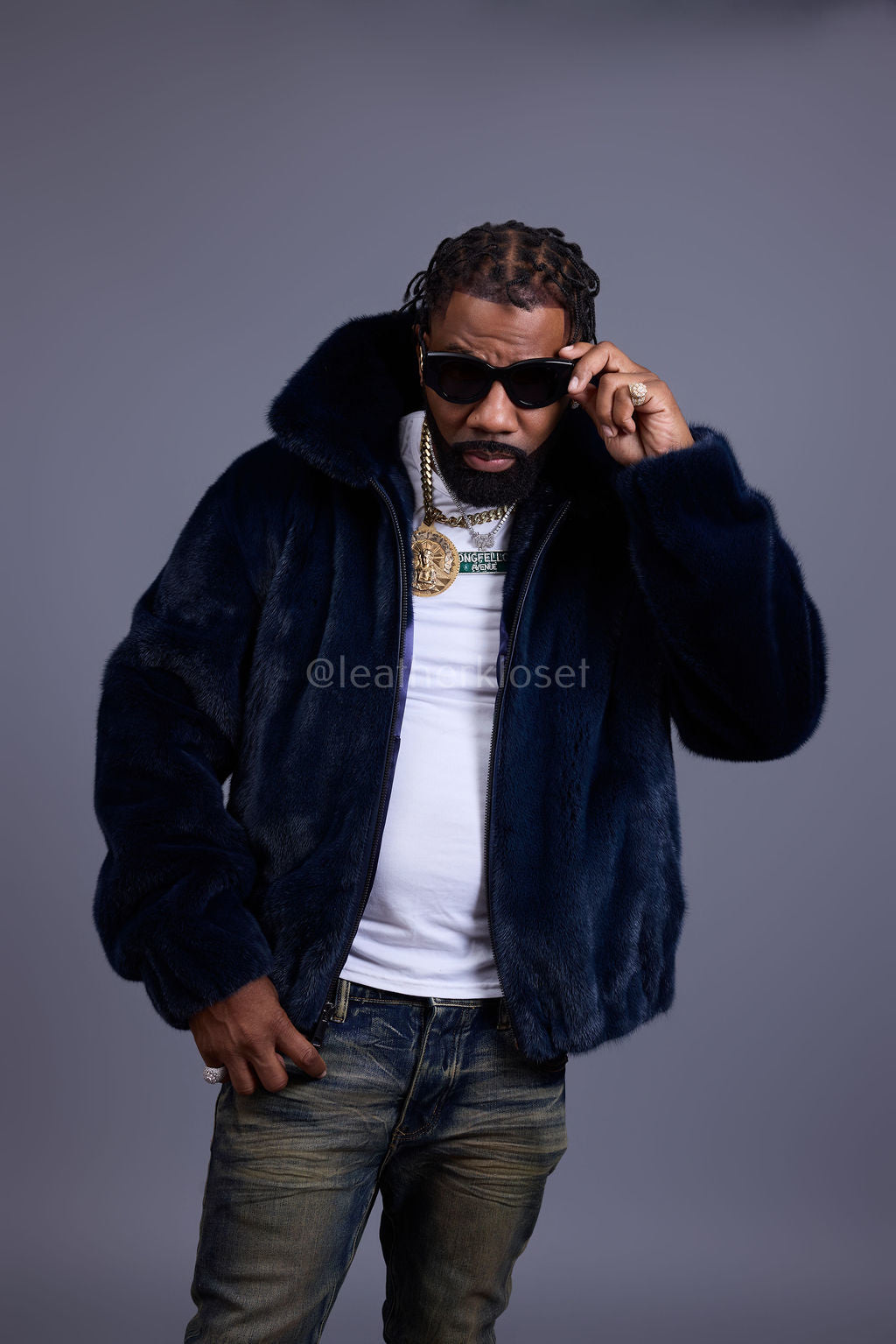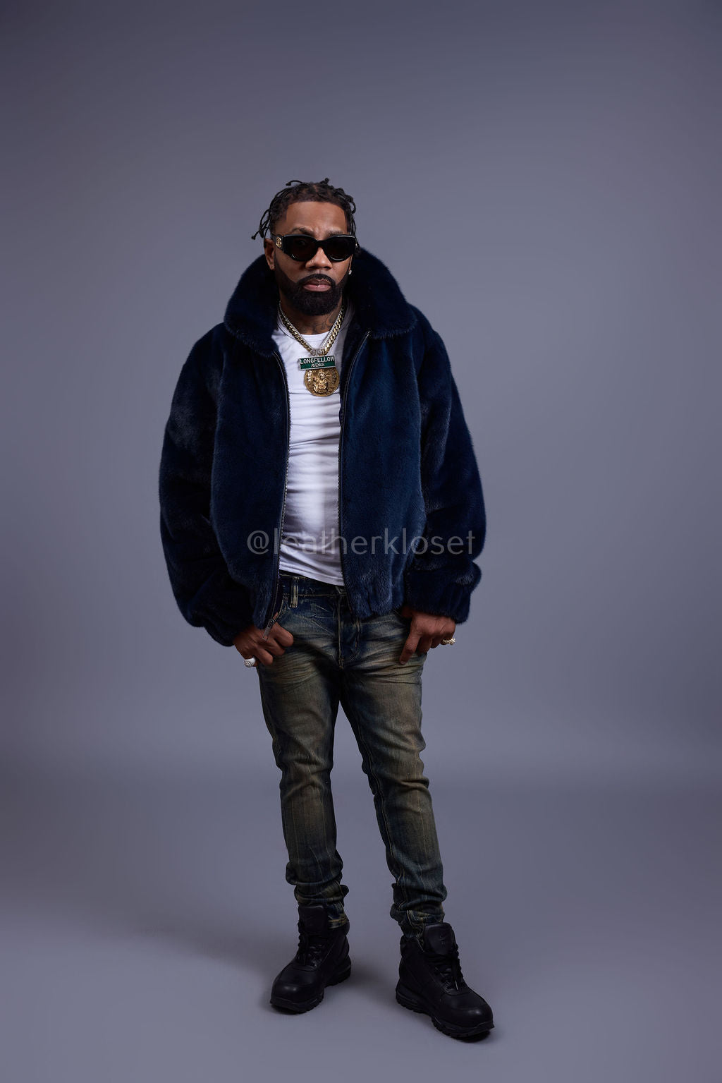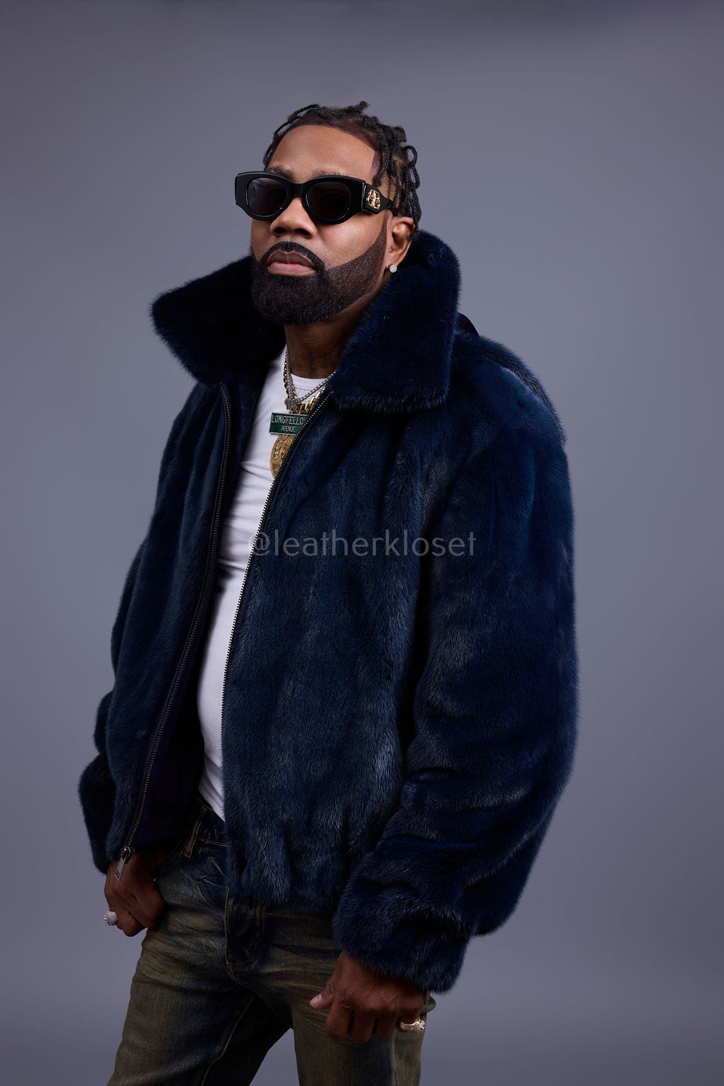 Men's Full-Skin Mink Bomber Jacket With Removable Hood [Navy]