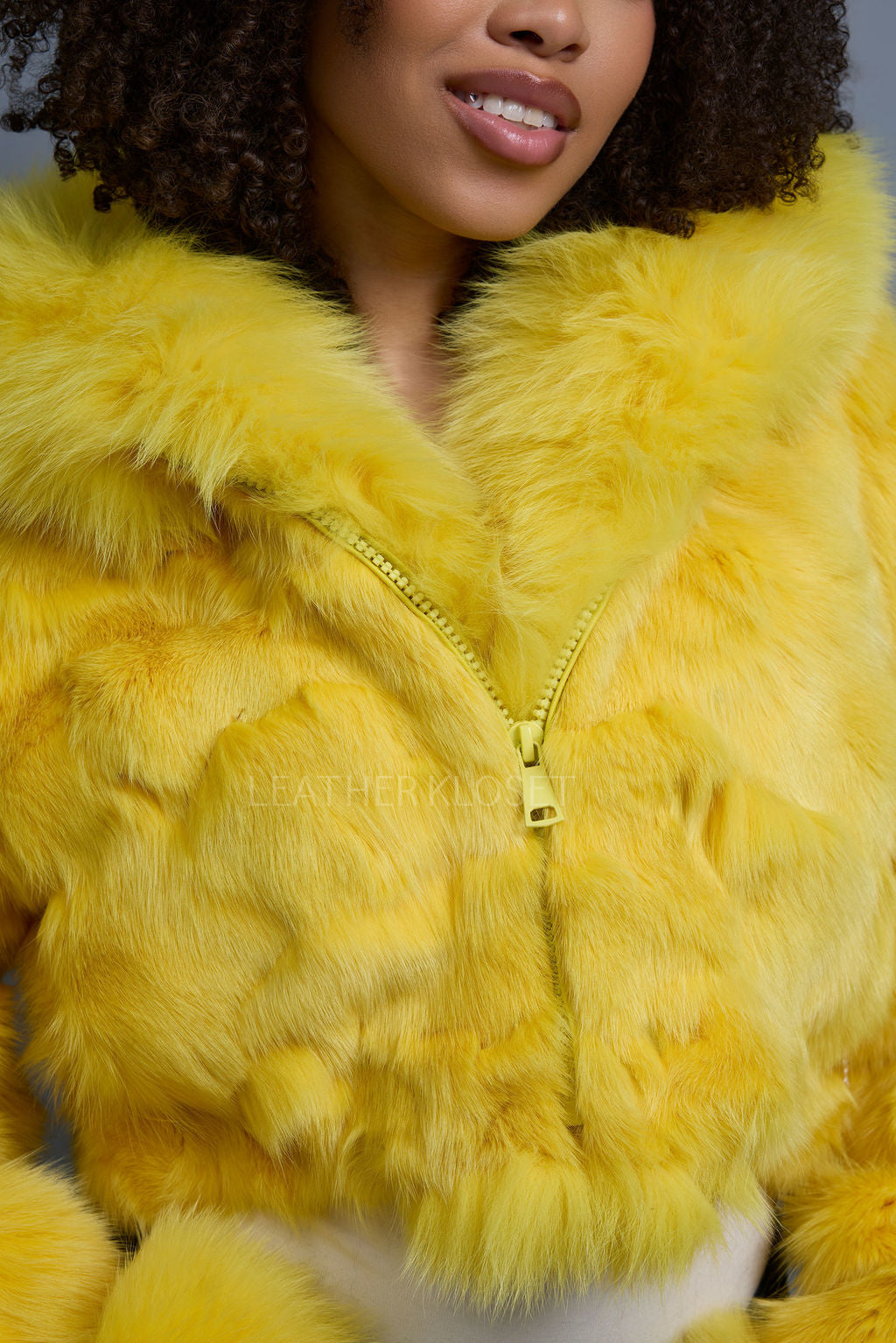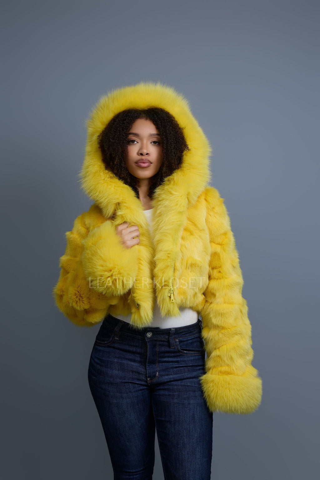 Women's Crop Fox Bomber With Hood [Yellow]