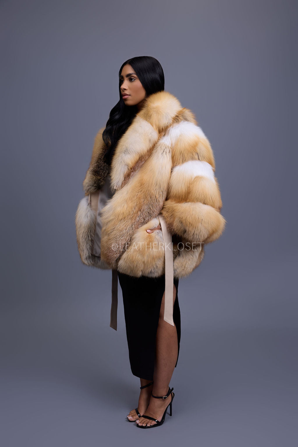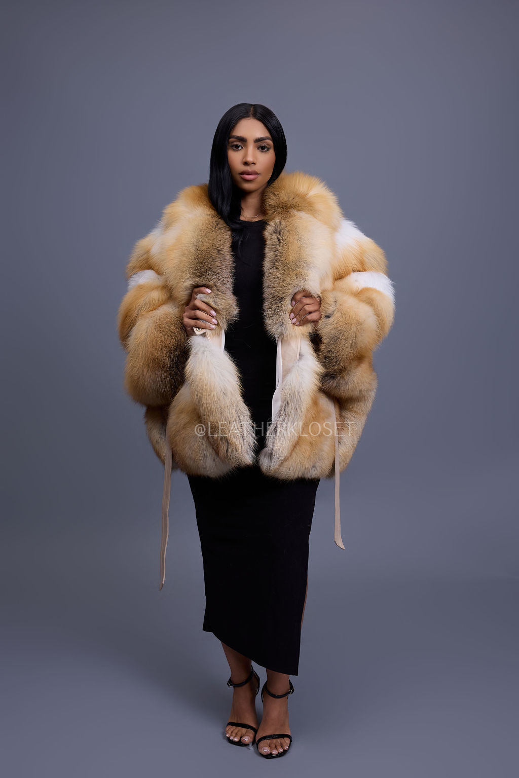 Women's Ruby Fox Fur Poncho [Arctic Fox]