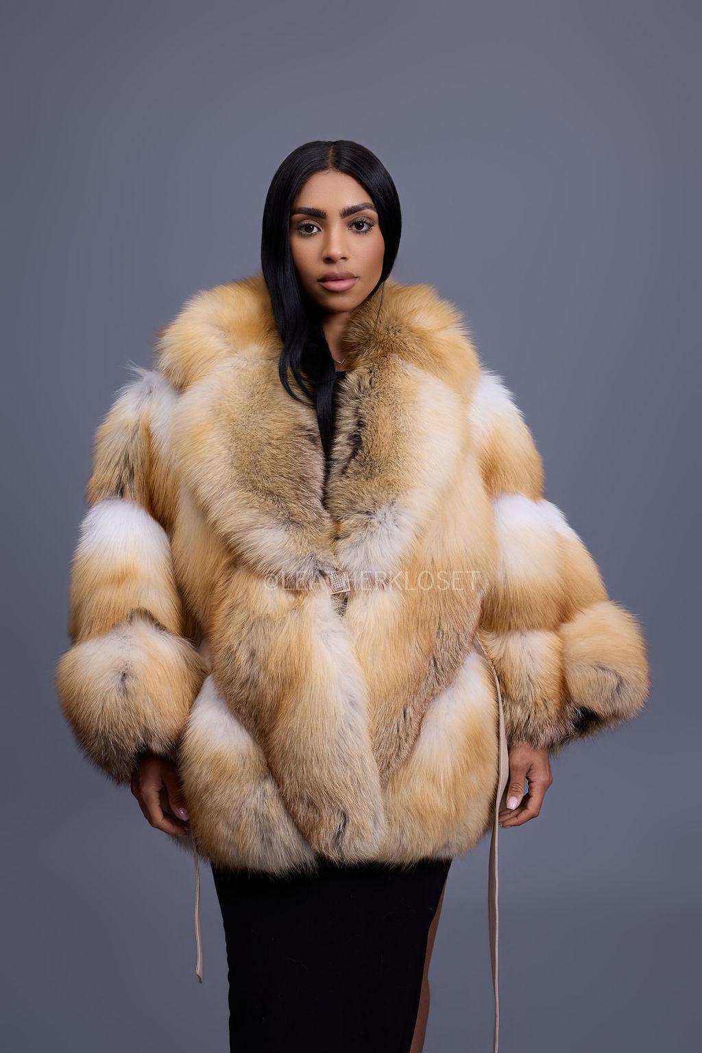 Women's Charlotte Crop Fox Bomber [Beige Frosted]