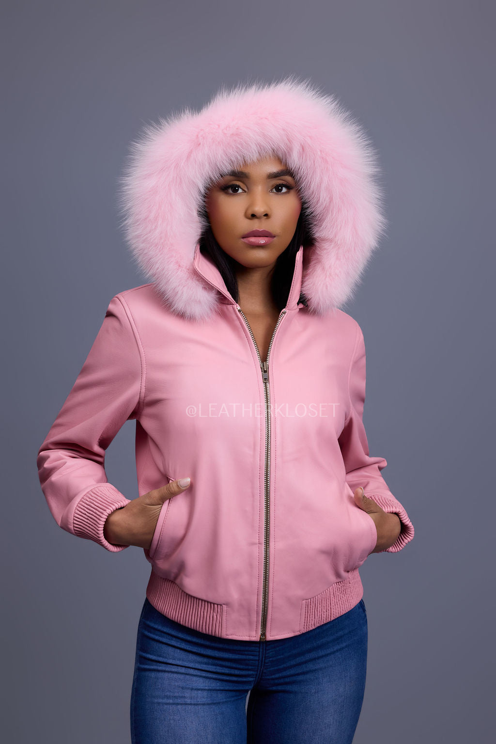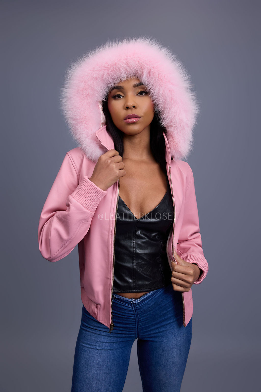 Women's BB Jacket With Premium Fox Fur Hood [Bubble Pink]