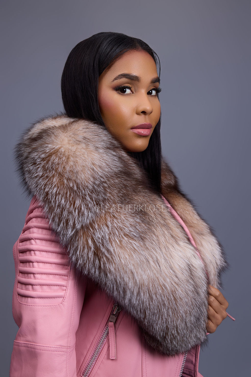 Women's Trey Biker Bubble Pink Oversized Fox Collar [Crystal]