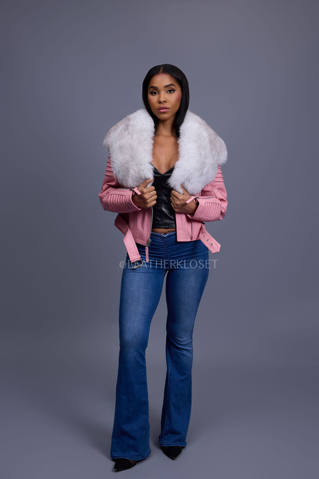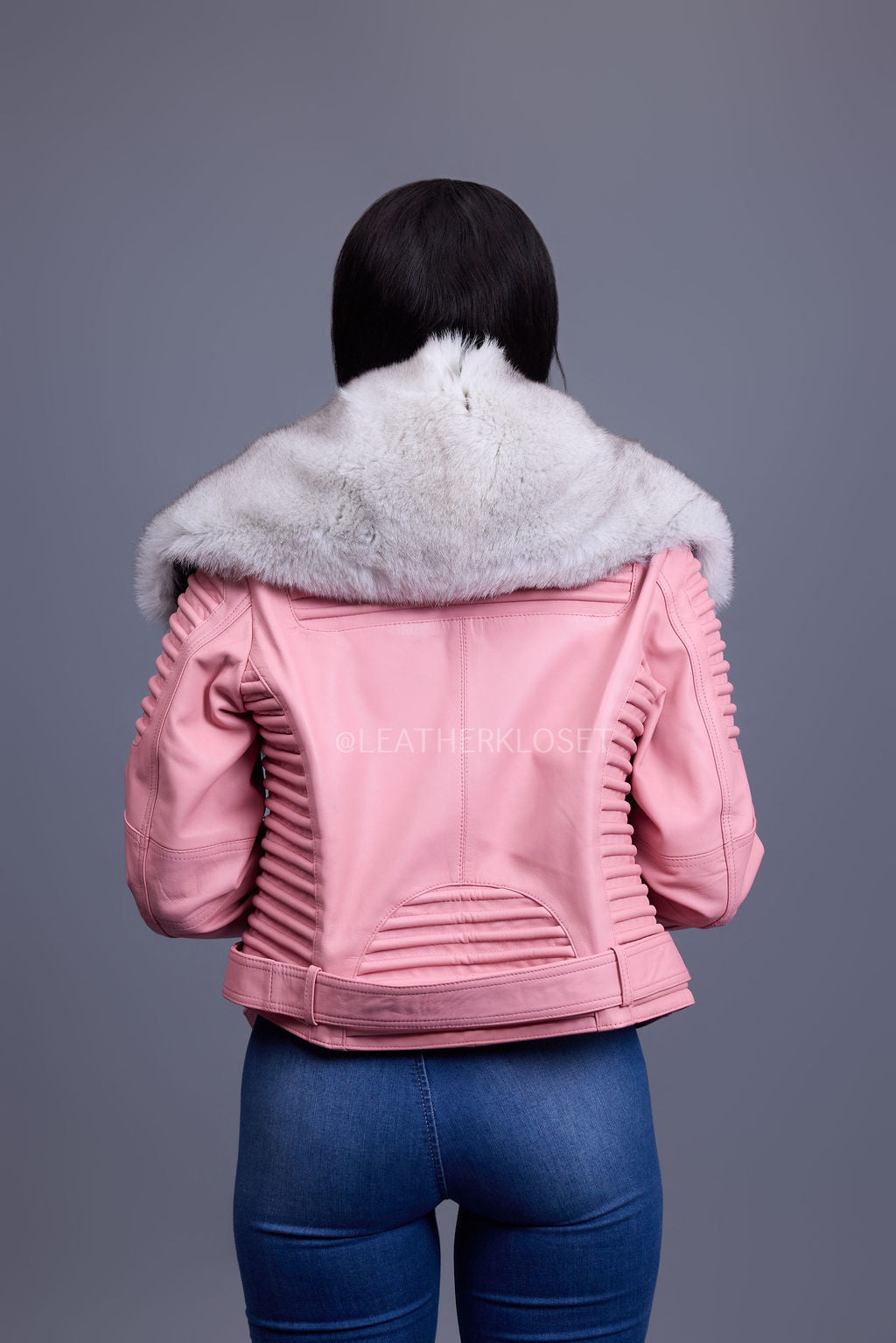 Women's Trey Biker Bubble Pink Oversized Fox Collar [Natural White]