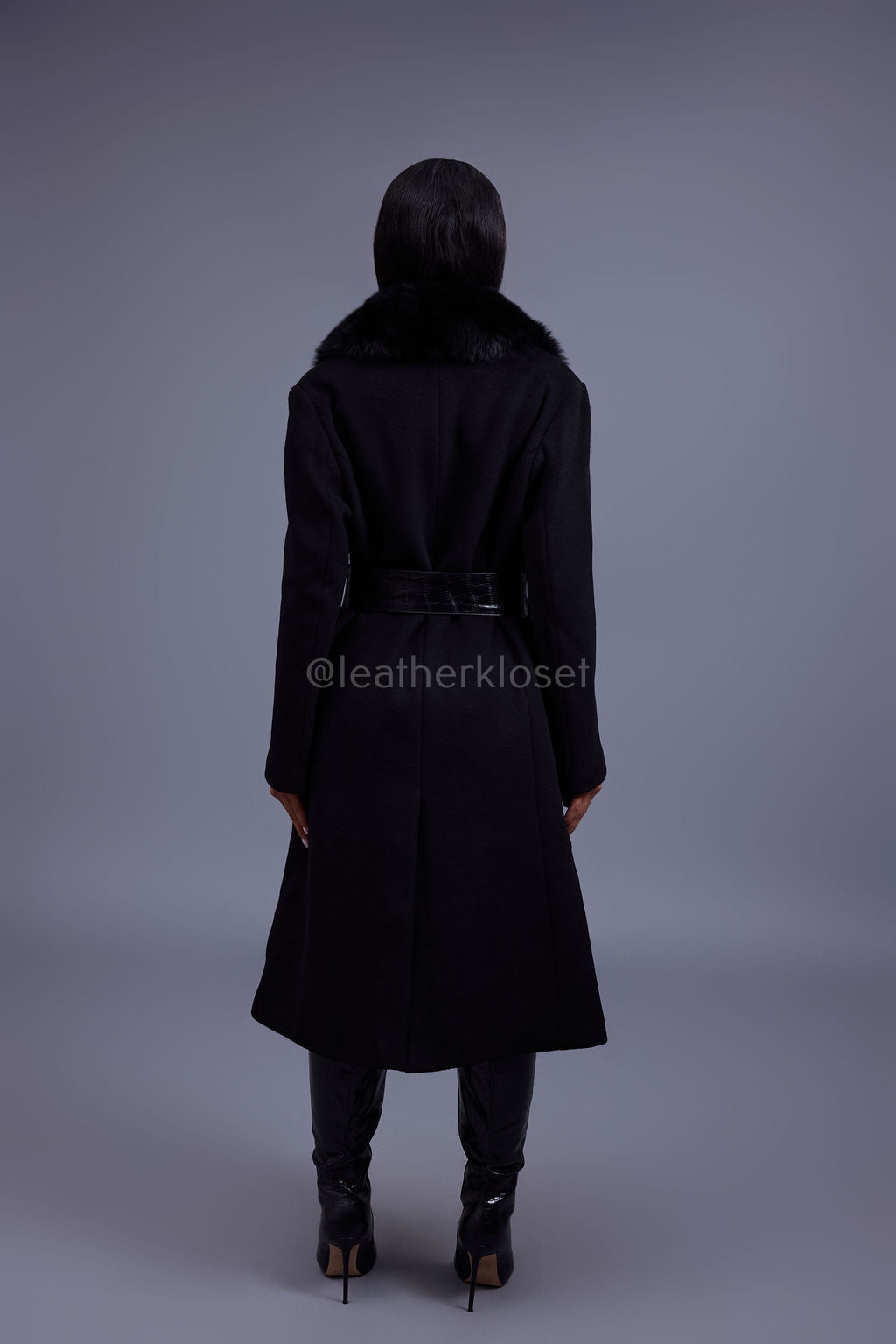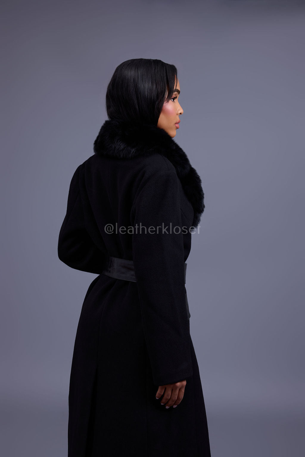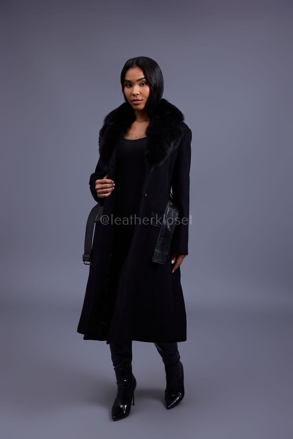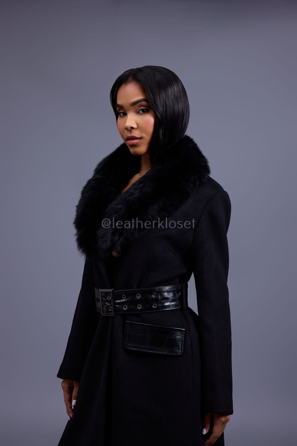 Women's Mandy Cashmere Trench Coat With Fur Trimming [Black]