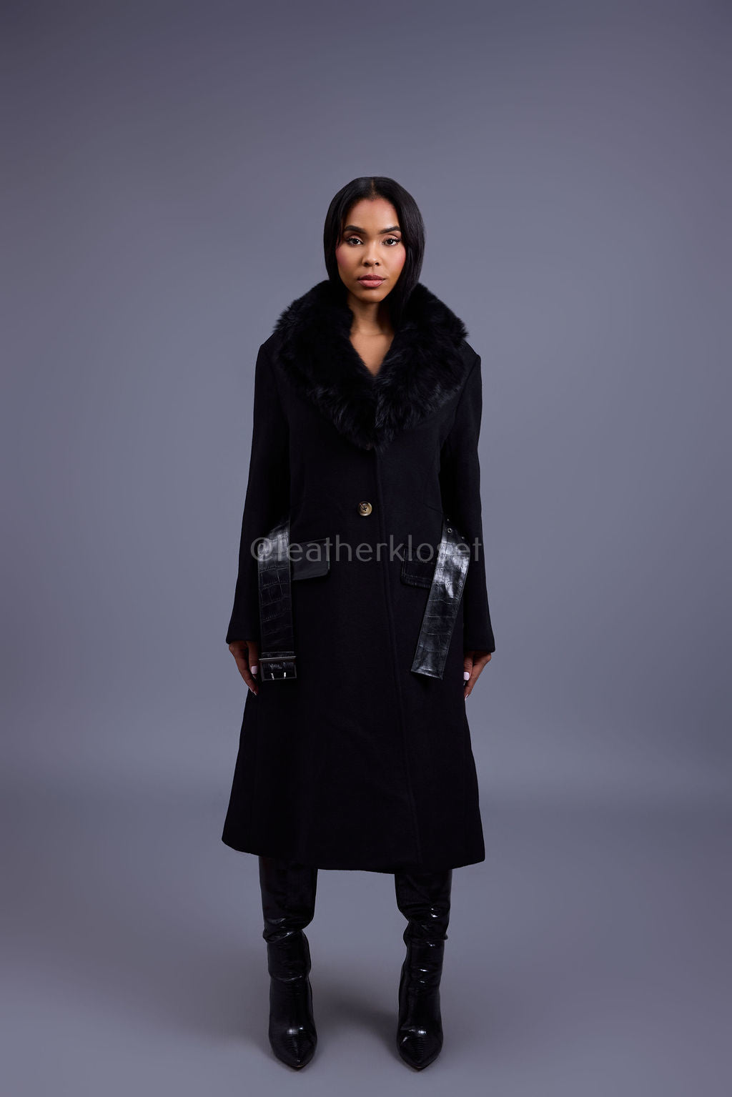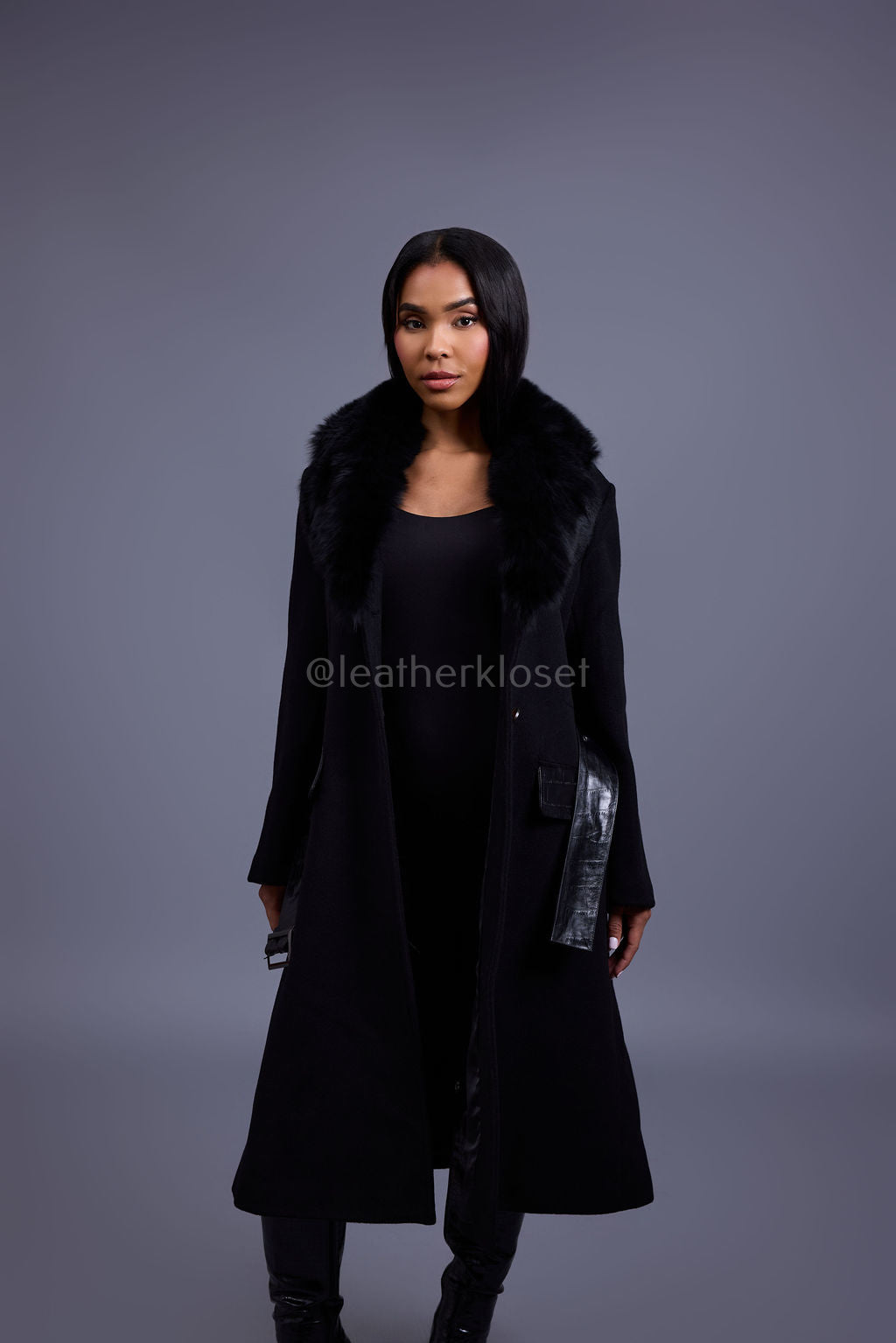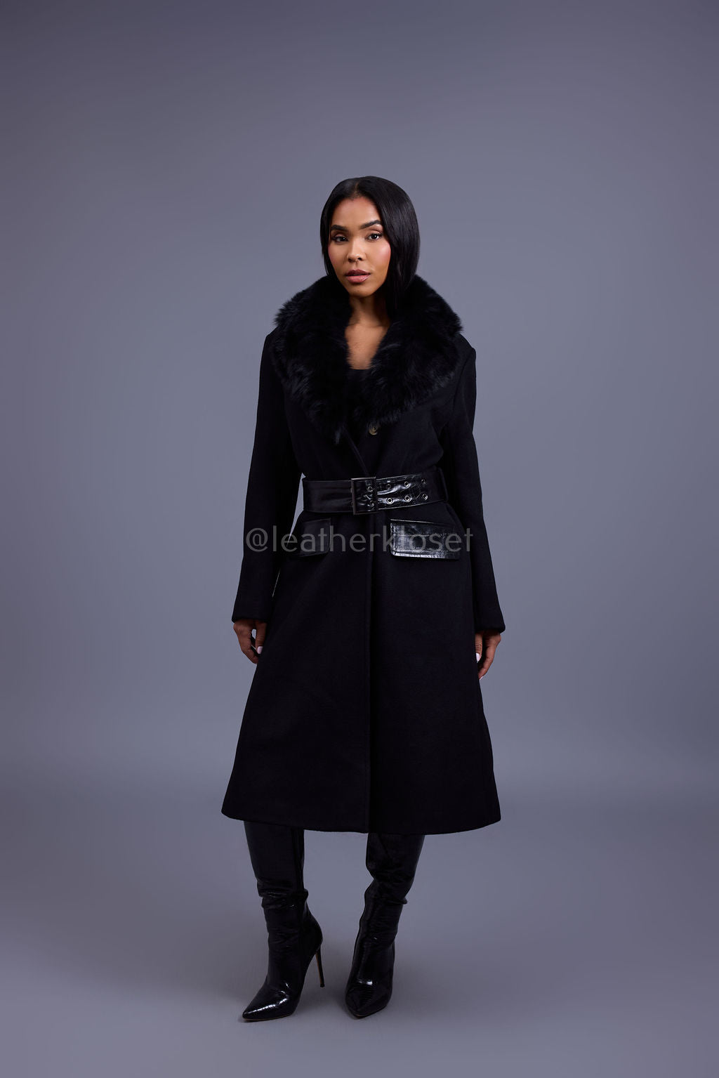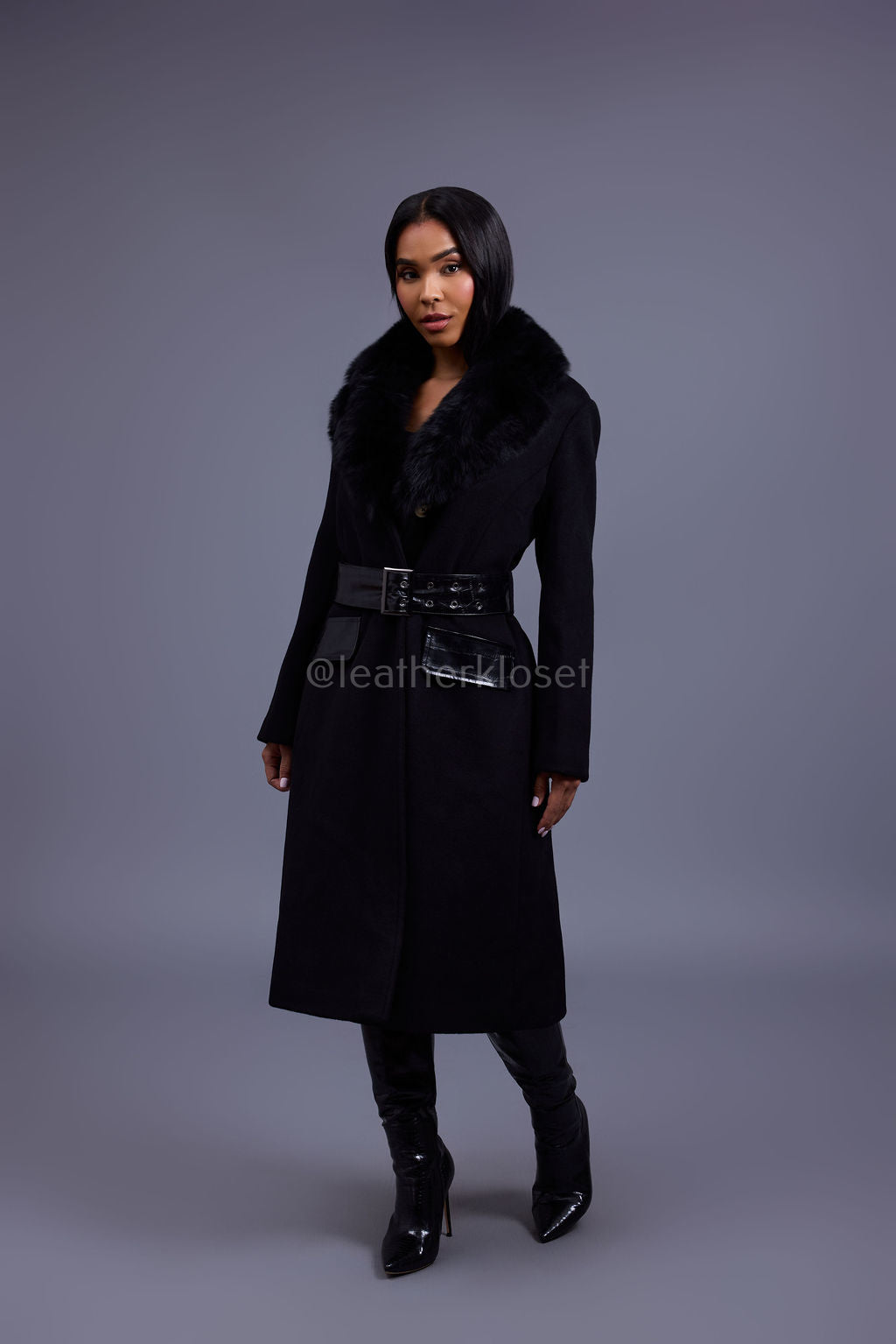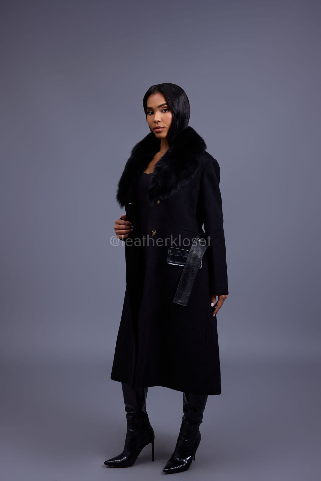Women's Mandy Cashmere Trench Coat With Fur Trimming [Black]