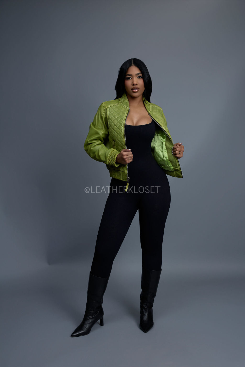 Women's Lucas Quilted Leather Jacket [Distressed Green]