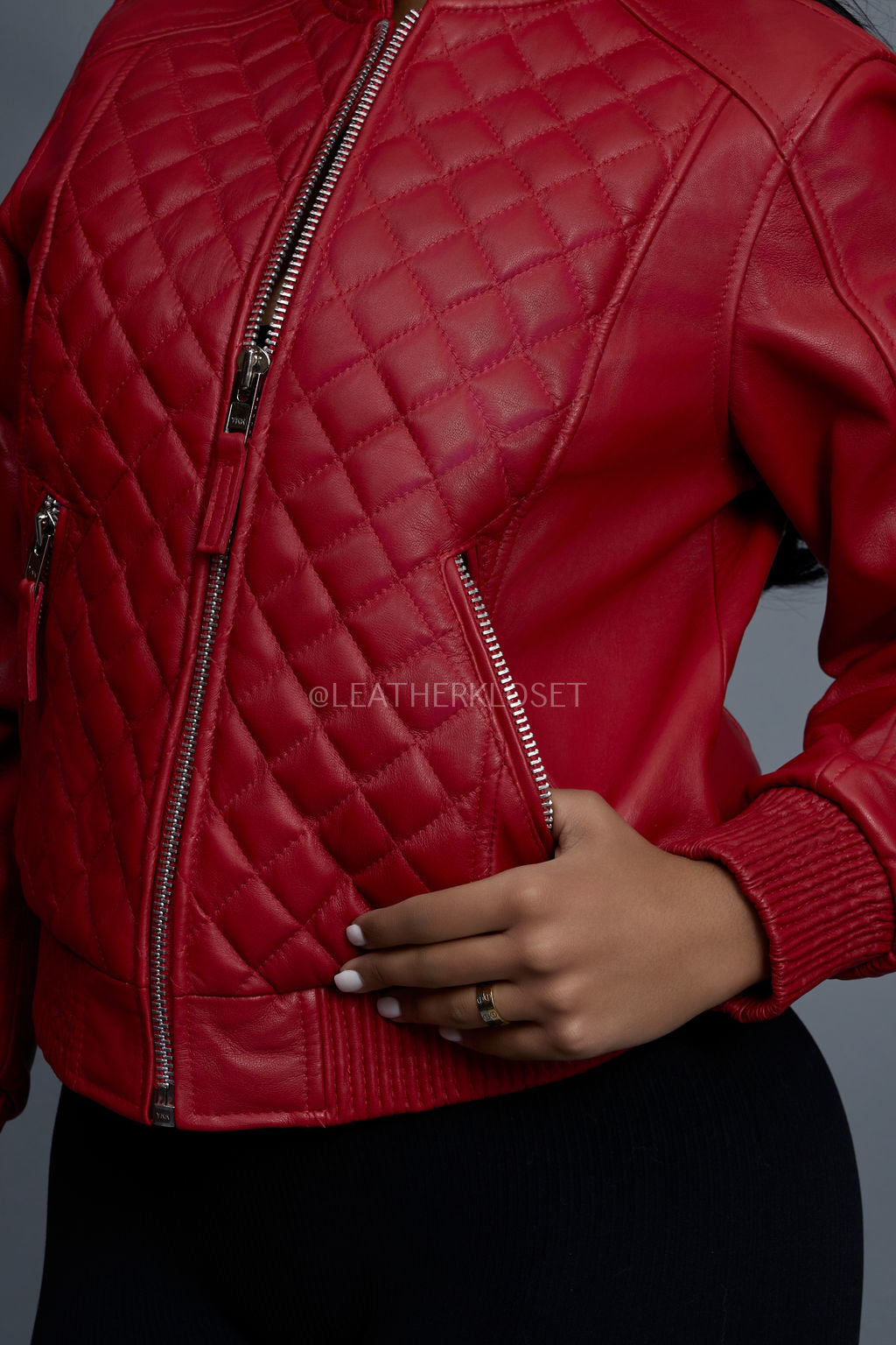 Women's Lucas Quilted Leather Jacket [Red]