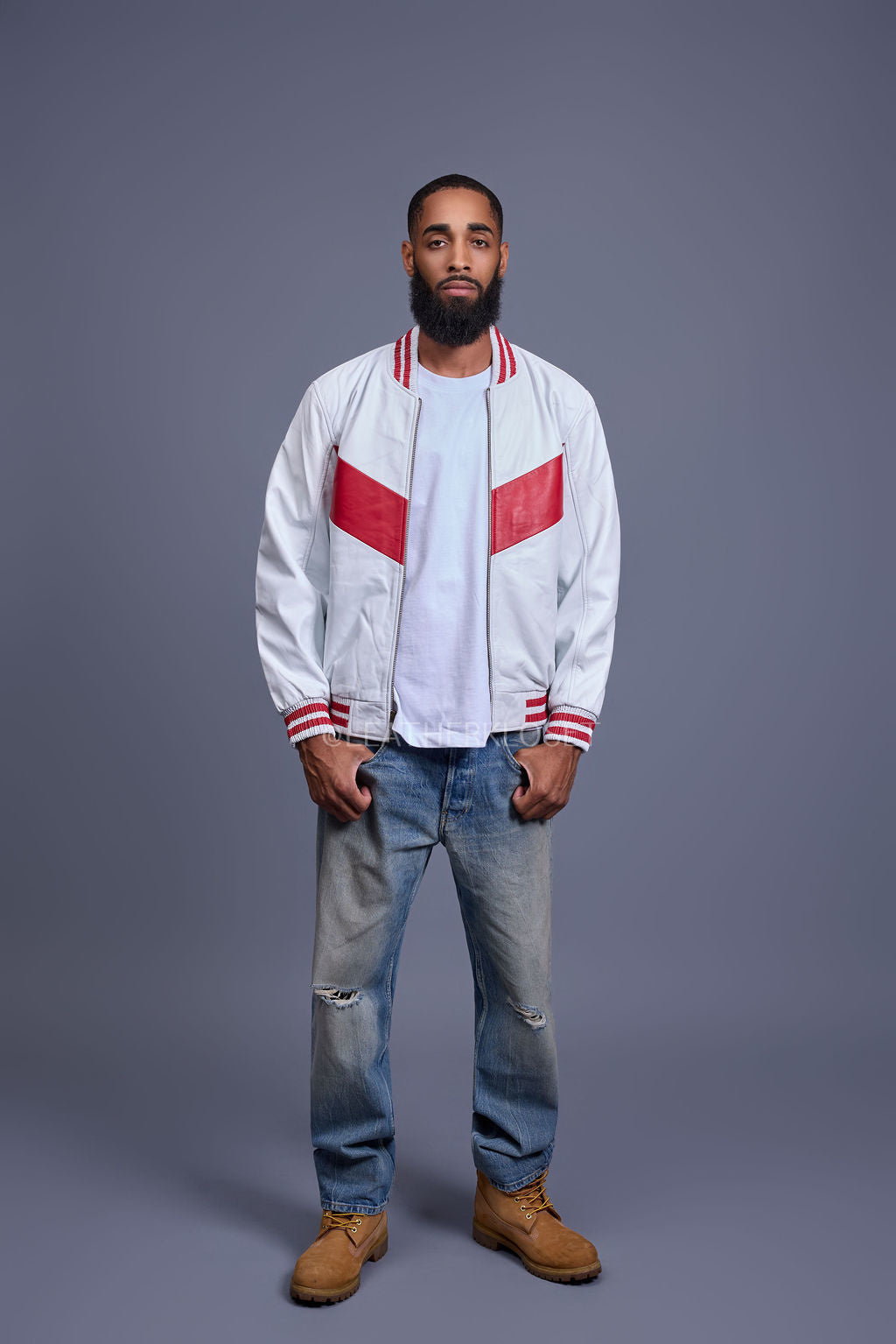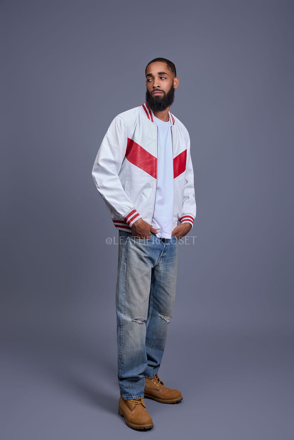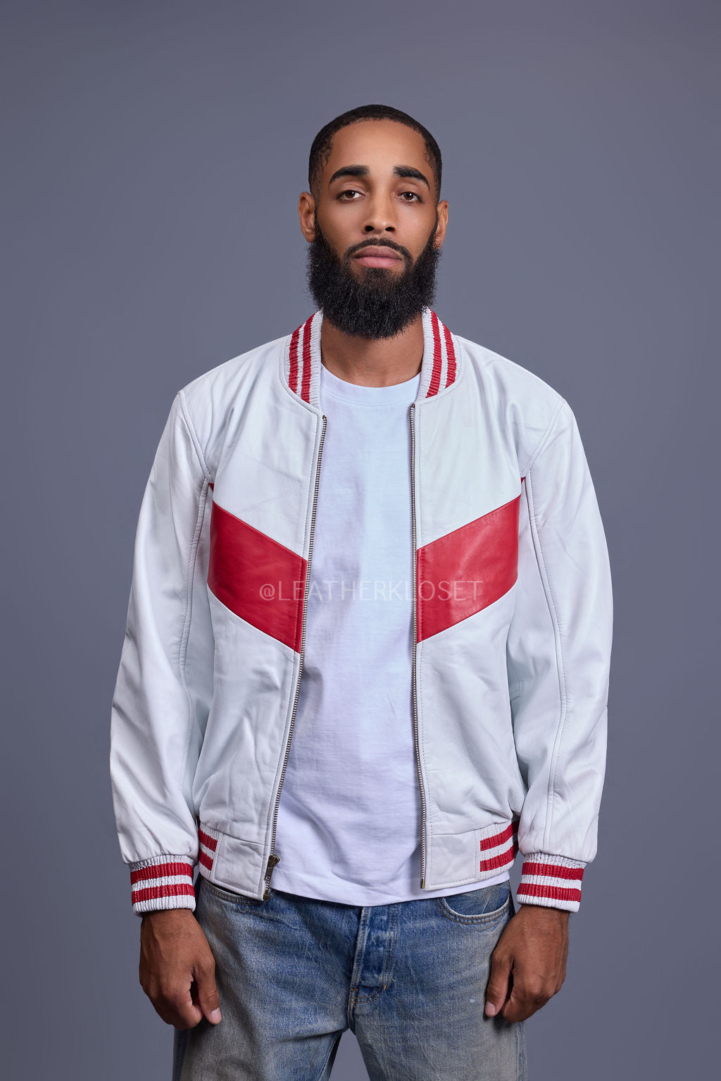 Men's Lucas Quilted Leather Bomber Jacket With Fox Hood [Silver Fox]
