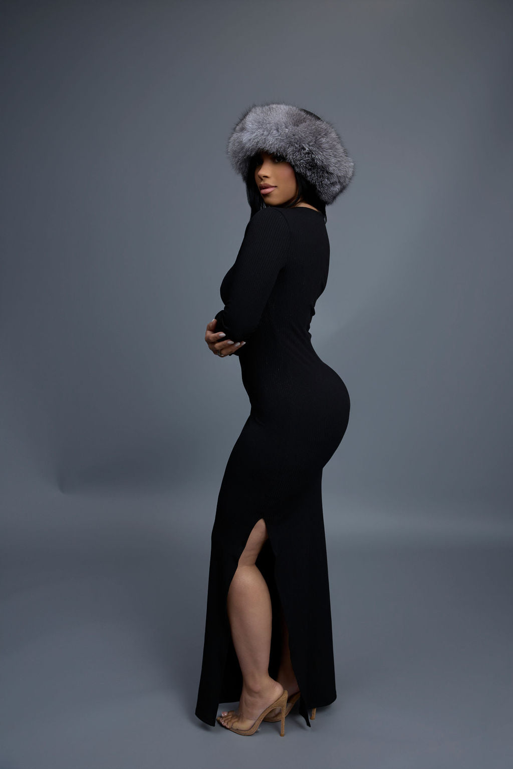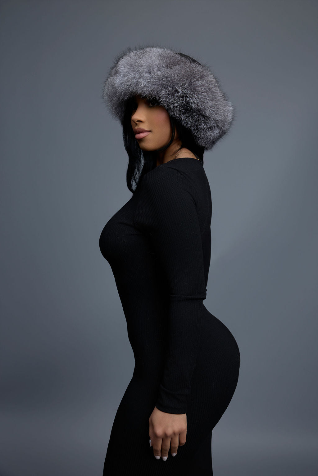 Women's Natalia Leather And Fox Russian Hat [Black/Silver]